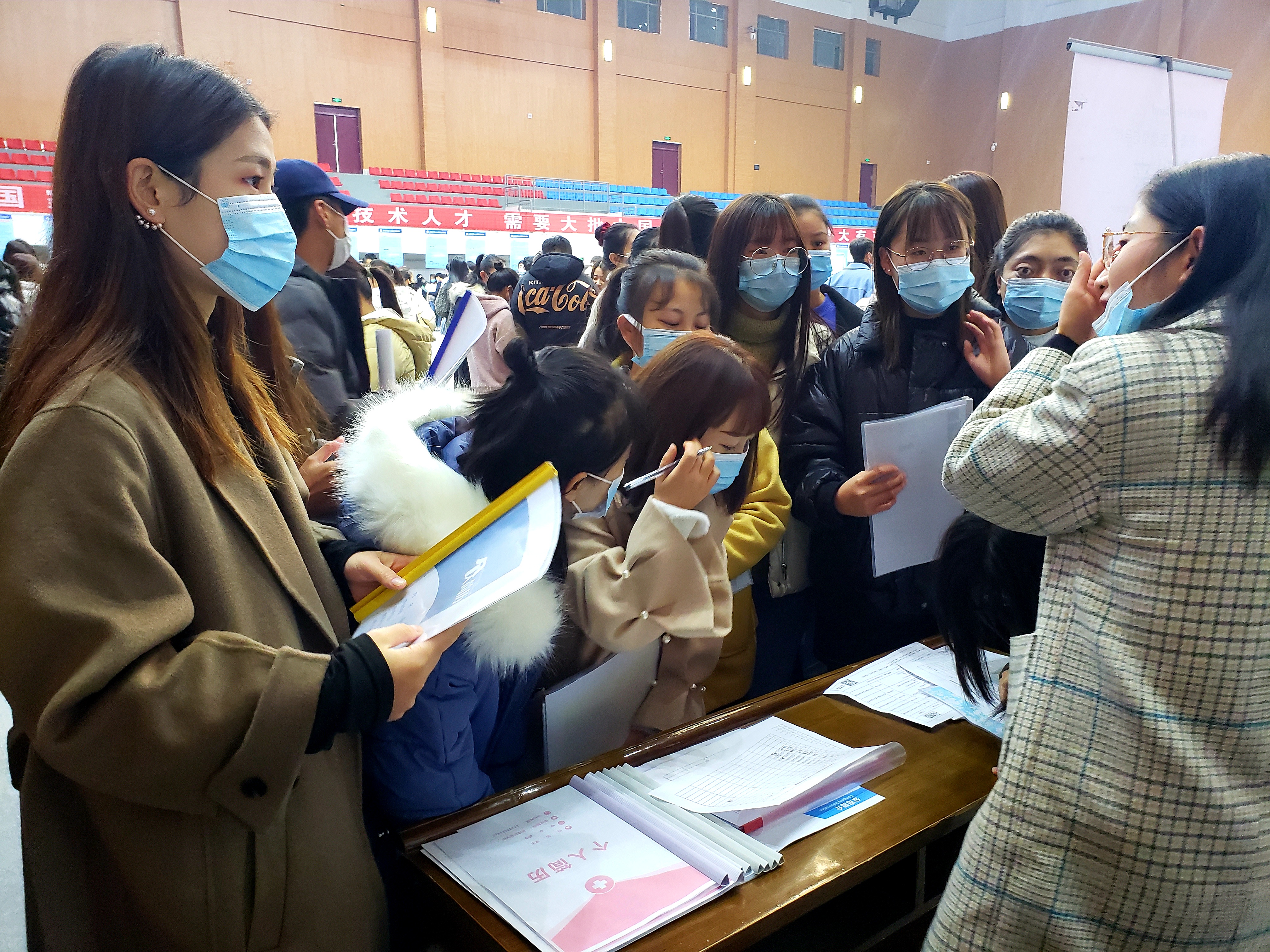 本次招聘會吸引了150多家企業(yè)報名參會,從中挑選110余家專業(yè)契合度高、發(fā)展?jié)摿?、社會信譽好、福利待遇優(yōu)的企業(yè)參加招聘。招聘單位涵蓋了機械機電、能源化工、信息工程、農(nóng)業(yè)技術(shù)、建筑制造、醫(yī)藥衛(wèi)生、教育培訓等50多個崗位類別,為畢業(yè)生提供崗位3340多個。招聘會現(xiàn)場人頭攢動,招聘單位積極宣介,同學們手持簡歷從容自信地展示自己扎實的專業(yè)知識以及良好的精神風貌,贏得了招聘單位的贊賞。學院2021屆畢業(yè)生共有3803名,經(jīng)初步統(tǒng)計,此次招聘會共達成就業(yè)意向2500多名,有1800人在招聘會現(xiàn)場簽訂了就業(yè)三方協(xié)議。此次招聘會按照新冠肺炎疫情常態(tài)化防控要求,逐一核驗來校招聘人員健康綠碼,嚴格落實體溫檢測、消毒防疫等疫情防控措施。
