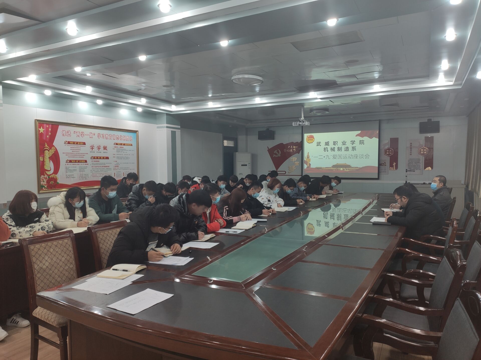 為了紀(jì)念“一二·九”愛國運(yùn)動,我系于2020年12月9日,在博學(xué)樓二樓黨員活動室召開了武威職業(yè)學(xué)院機(jī)械制造系“一二·九”愛國運(yùn)動座談會,參會人員有大二團(tuán)學(xué)委員會全體成員以及18級、19級、20級各班團(tuán)支書。