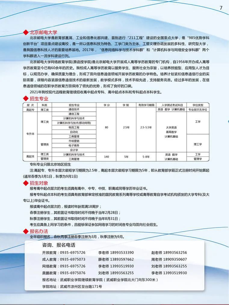武威職業(yè)學(xué)院繼續(xù)教育學(xué)院2021年招生簡(jiǎn)章