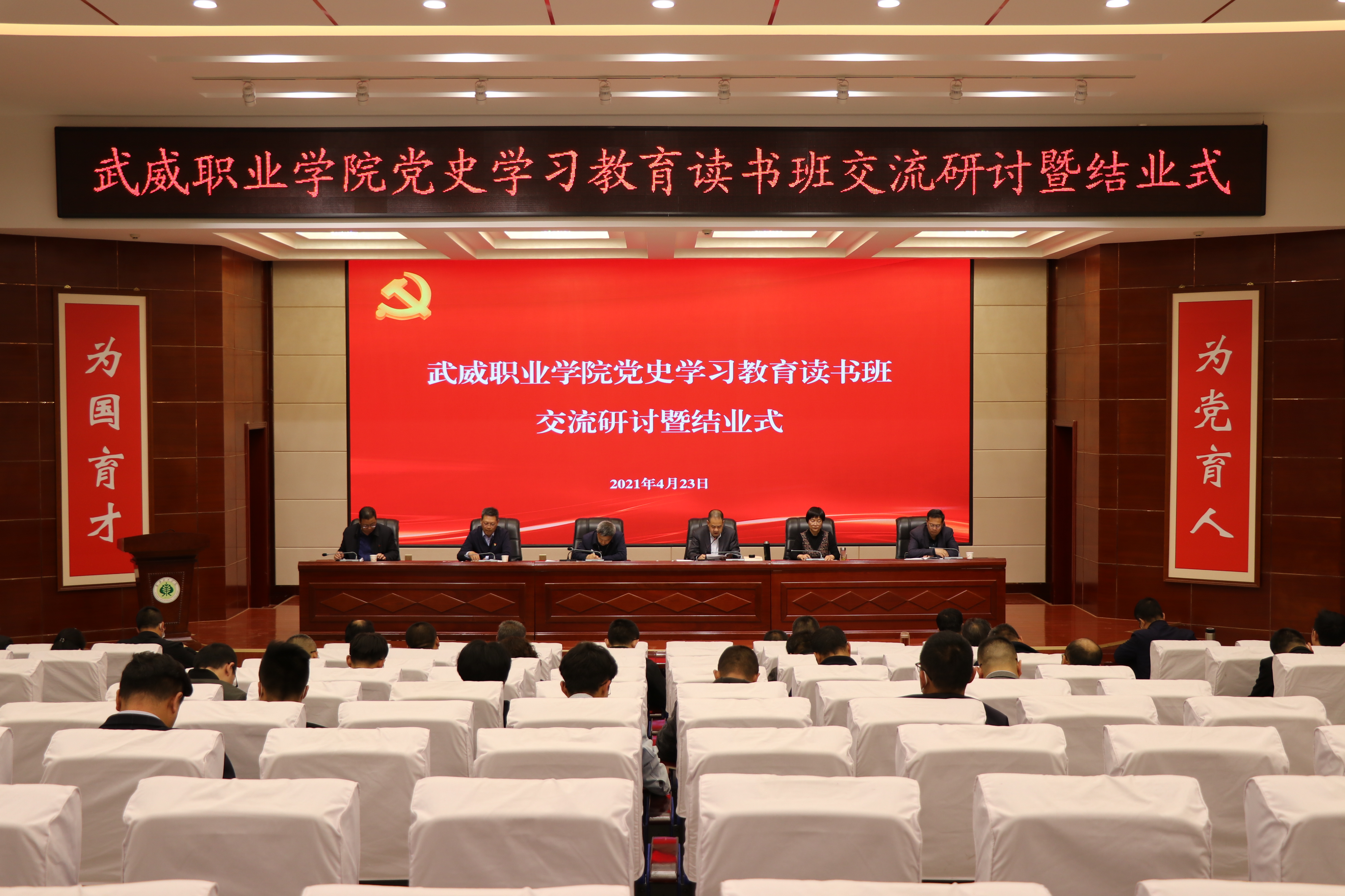 4月22日-23日,在第26個(gè)“世界讀書日”到來之際,武威職業(yè)學(xué)院黨委舉行了為期2天的黨史學(xué)習(xí)教育讀書班。學(xué)院領(lǐng)導(dǎo)班子成員、全體中層干部、各基層黨組織書記和支委委員、師生代表參加了讀書班集中學(xué)習(xí)。通過集中學(xué)習(xí)、專題輔導(dǎo)、經(jīng)典誦讀、知識(shí)競(jìng)賽、交流研討等形式引導(dǎo)黨員干部師生從百年黨史中學(xué)出堅(jiān)強(qiáng)黨性、學(xué)出堅(jiān)定信念、學(xué)出絕對(duì)忠誠、學(xué)出使命擔(dān)當(dāng)。