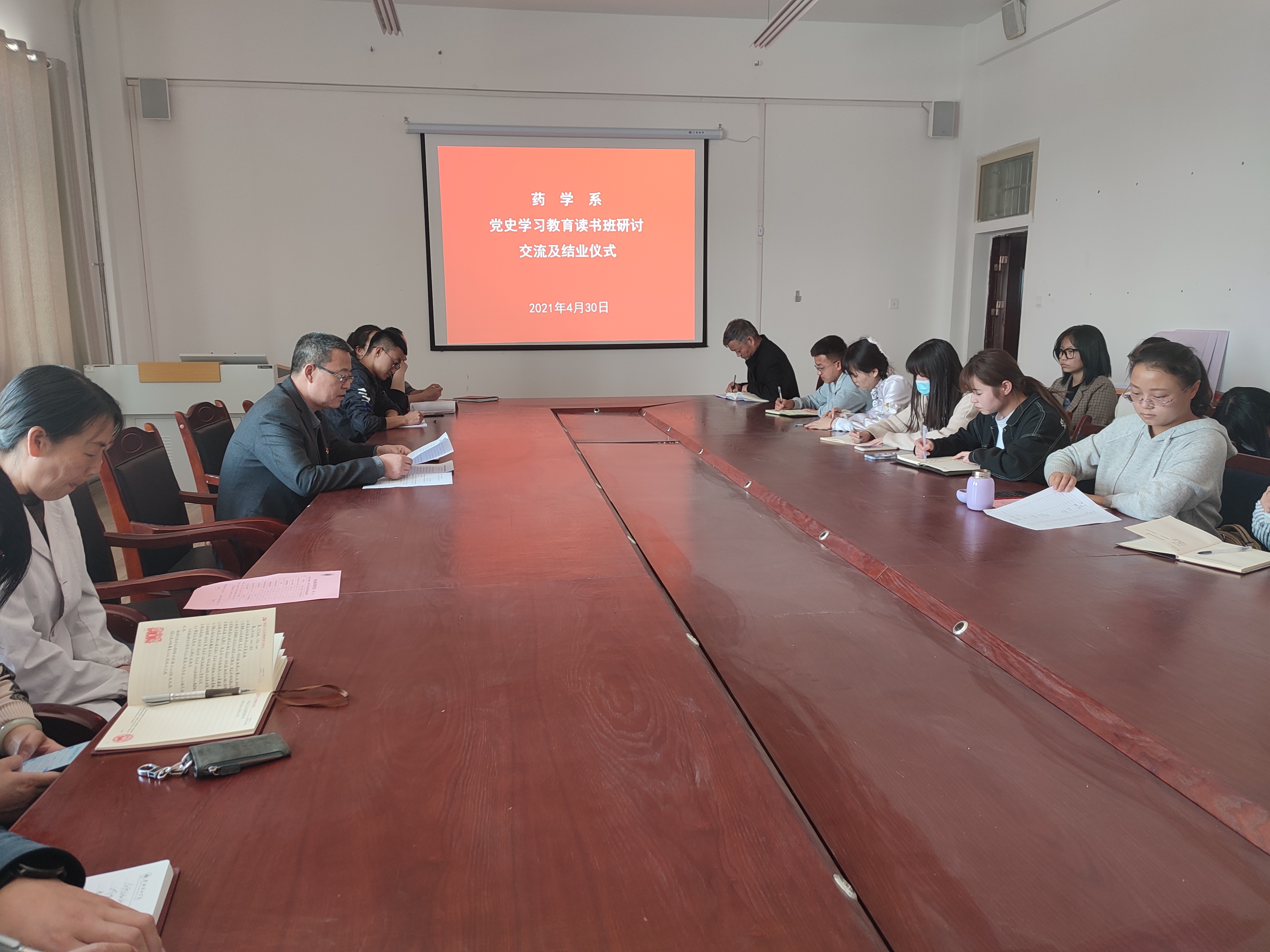 ?4月27日至4月30日,藥學(xué)系舉辦黨史學(xué)習(xí)教育專題讀書班。讀書班采取“專題學(xué)習(xí)+理論宣講+現(xiàn)場參觀+集體研討”的方式進行,讀書班學(xué)習(xí)由藥學(xué)系黨總支書記、主任魏潤明主持,全體黨員、專兼職教師和入黨積極分子參加了讀書班學(xué)習(xí)。