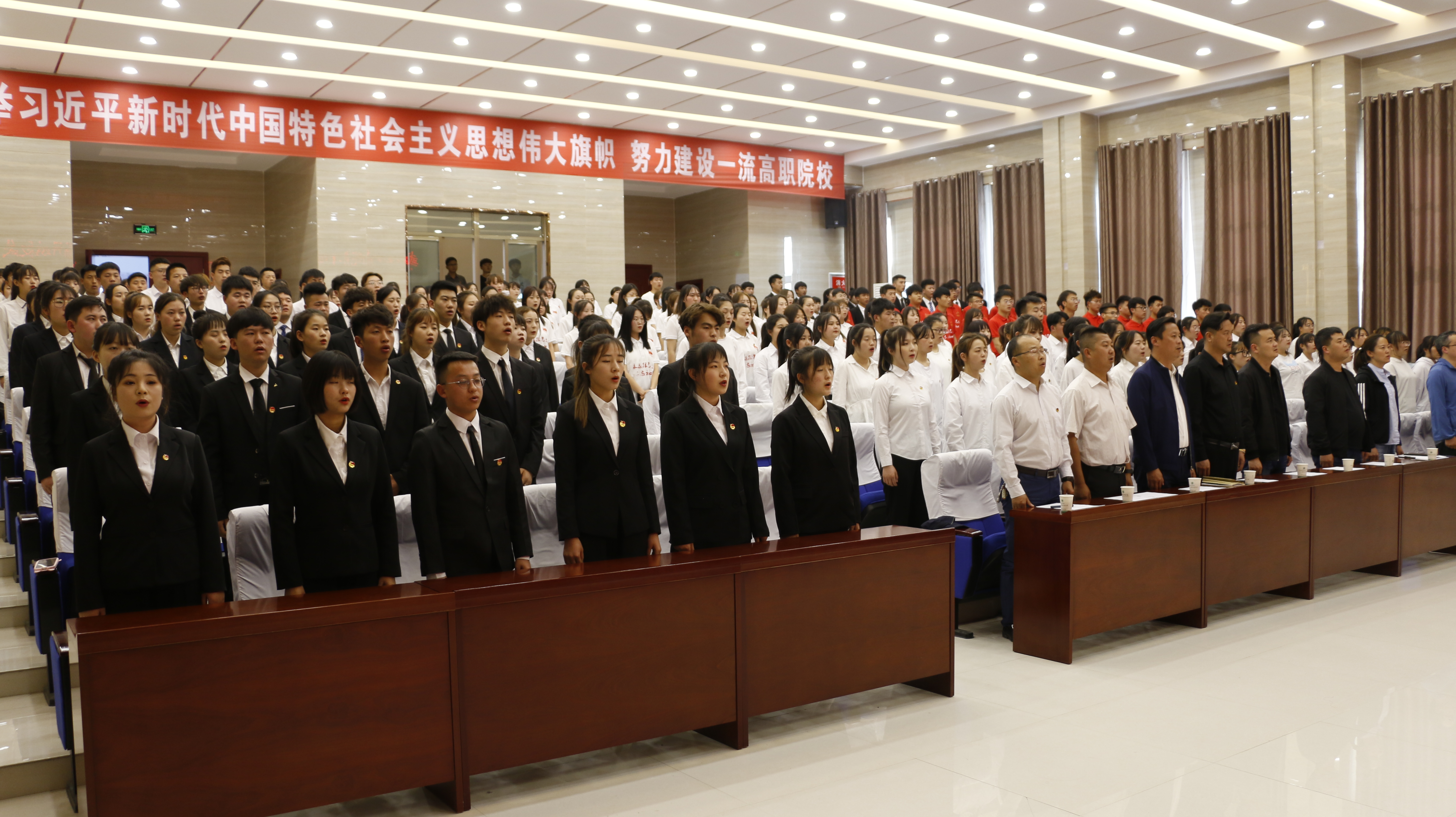 王守云在大會上做了總結(jié)講話。他向75名新團員及受表彰的集體和個人表示熱烈的祝賀,向長期以來關心共青團工作,并致力于青年學生成長成才的老師和團員青年表示衷心的感謝。并向全體團員青年提出三點希望和要求:一是希望各級團組織要牢牢把握共青團工作的三個根本性問題,做好黨的助手和后備軍;二是希望各級團干部勇?lián)厝?、真抓實干,打造忠誠干凈擔當?shù)膱F干部隊伍;三是希望廣大團員青年堅定理想信念,青春心向黨,奮進新征程。