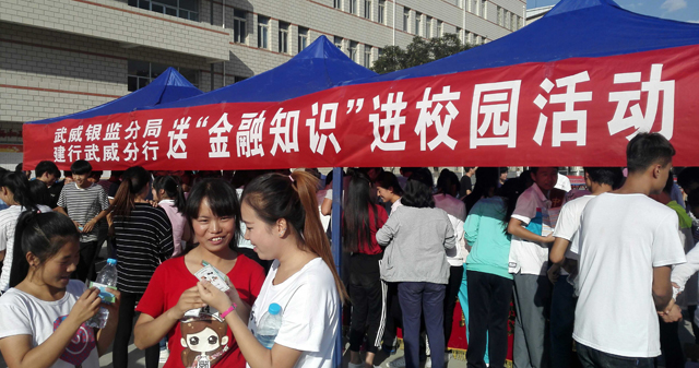 為幫助和引導(dǎo)大學(xué)生群體牢固樹立金融安全意識,9月13日下午,武威銀監(jiān)分局聯(lián)合建行武威分行在武威職業(yè)學(xué)院尚德樓南操場開展了“送金融知識進(jìn)校園”宣傳活動。