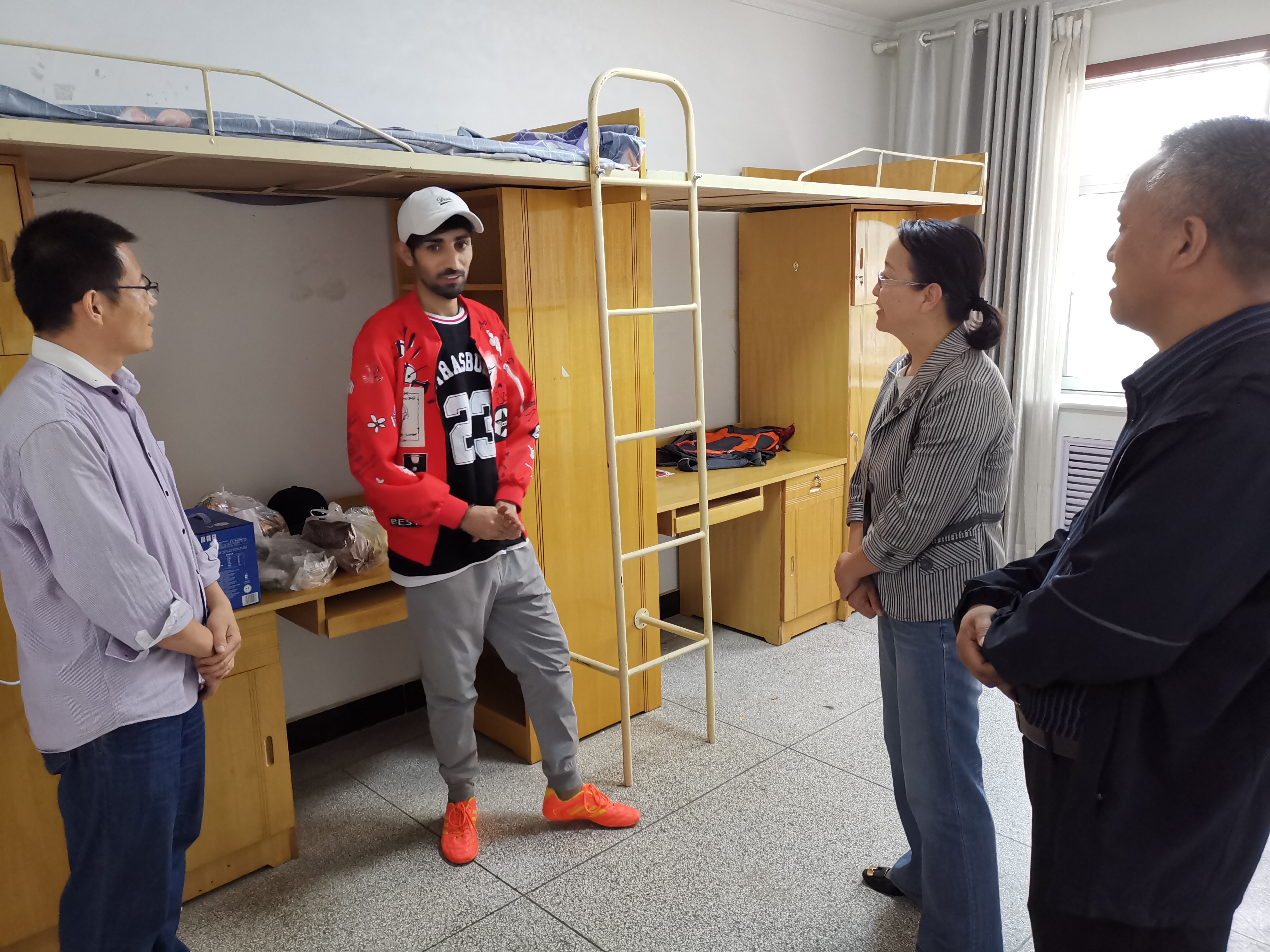 田迎春先后深入2019級(jí)、2021級(jí)來(lái)華留學(xué)生宿舍、廚房,查看、了解留學(xué)生住宿、生活情況,向留學(xué)生送上慰問品。在留學(xué)生宿舍,田迎春與留學(xué)生親切交談,關(guān)切詢問留學(xué)生日常生活、專業(yè)學(xué)習(xí)、漢語(yǔ)學(xué)習(xí)等情況。她向留學(xué)生簡(jiǎn)要介紹了中秋節(jié)、國(guó)慶節(jié)的來(lái)歷、風(fēng)俗及意義,留學(xué)生們對(duì)中國(guó)傳統(tǒng)文化表現(xiàn)出濃厚興趣;她指出,留學(xué)生背井離鄉(xiāng)來(lái)華求學(xué),遇到困難在所難免,但要堅(jiān)定信心,學(xué)院會(huì)盡力滿足留學(xué)生學(xué)習(xí)、生活的需要;她鼓勵(lì)留學(xué)生積極主動(dòng)融入學(xué)院大家庭,廣交朋友,在融入、融合過程中體會(huì)在華學(xué)習(xí)生活的樂趣;她希望留學(xué)生珍惜寶貴的來(lái)華學(xué)習(xí)的機(jī)會(huì),不僅要學(xué)好理論知識(shí),而且要學(xué)好操作技能,不僅要學(xué)好專業(yè)知識(shí),而且要學(xué)好優(yōu)秀中華文化,講好中國(guó)故事,向世界展示真實(shí)的中國(guó),爭(zhēng)做知華友華愛華的留學(xué)生,爭(zhēng)做中國(guó)與世界各國(guó)友好的使者。