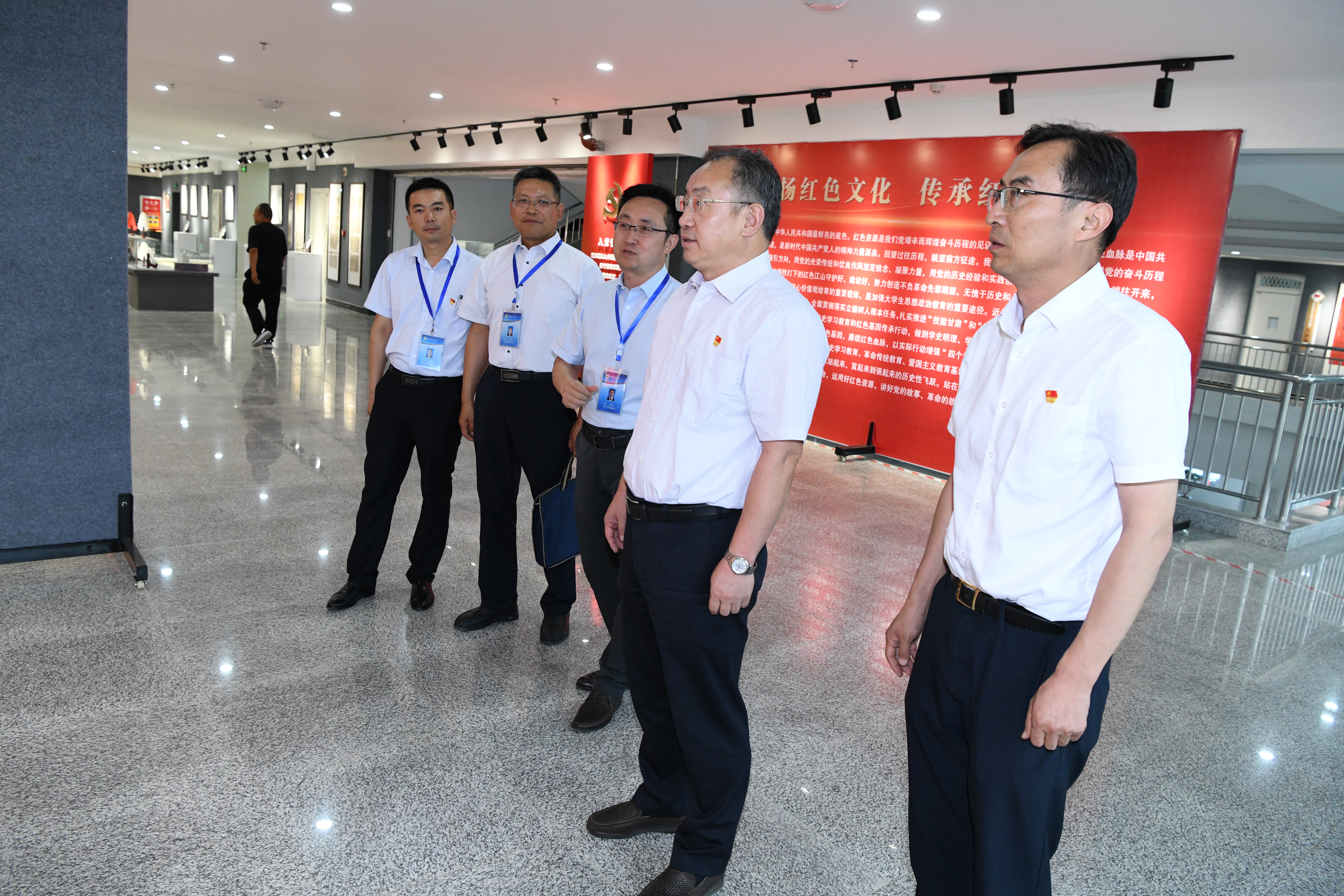 會后,張新平一行在學院領導的陪同下參觀了學院紅色文化藝術館,組織人事處處長任陶同志做講解。