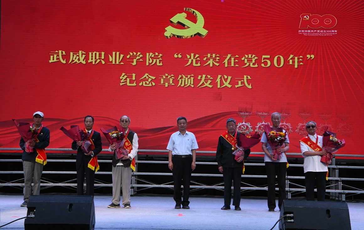 首先舉行了“光榮在黨50年”紀(jì)念章頒發(fā)儀式,學(xué)院黨委委員、副院長王永緒副教授宣讀《武威職業(yè)學(xué)院獲得“光榮在黨50年”紀(jì)念章黨員名單,學(xué)院黨委書記、院長趙明教授向獲得紀(jì)念章的6名老黨員代表頒發(fā)紀(jì)念章。老黨員在不同歷史階段,為黨和國家教育事業(yè)作出了突出貢獻(xiàn),為學(xué)院高質(zhì)量發(fā)展打下了堅實根基。每一位老黨員都是學(xué)院奮斗史上的一個縮影,我們要永遠(yuǎn)銘記他們的卓越貢獻(xiàn),凝聚對他們的感激之情!