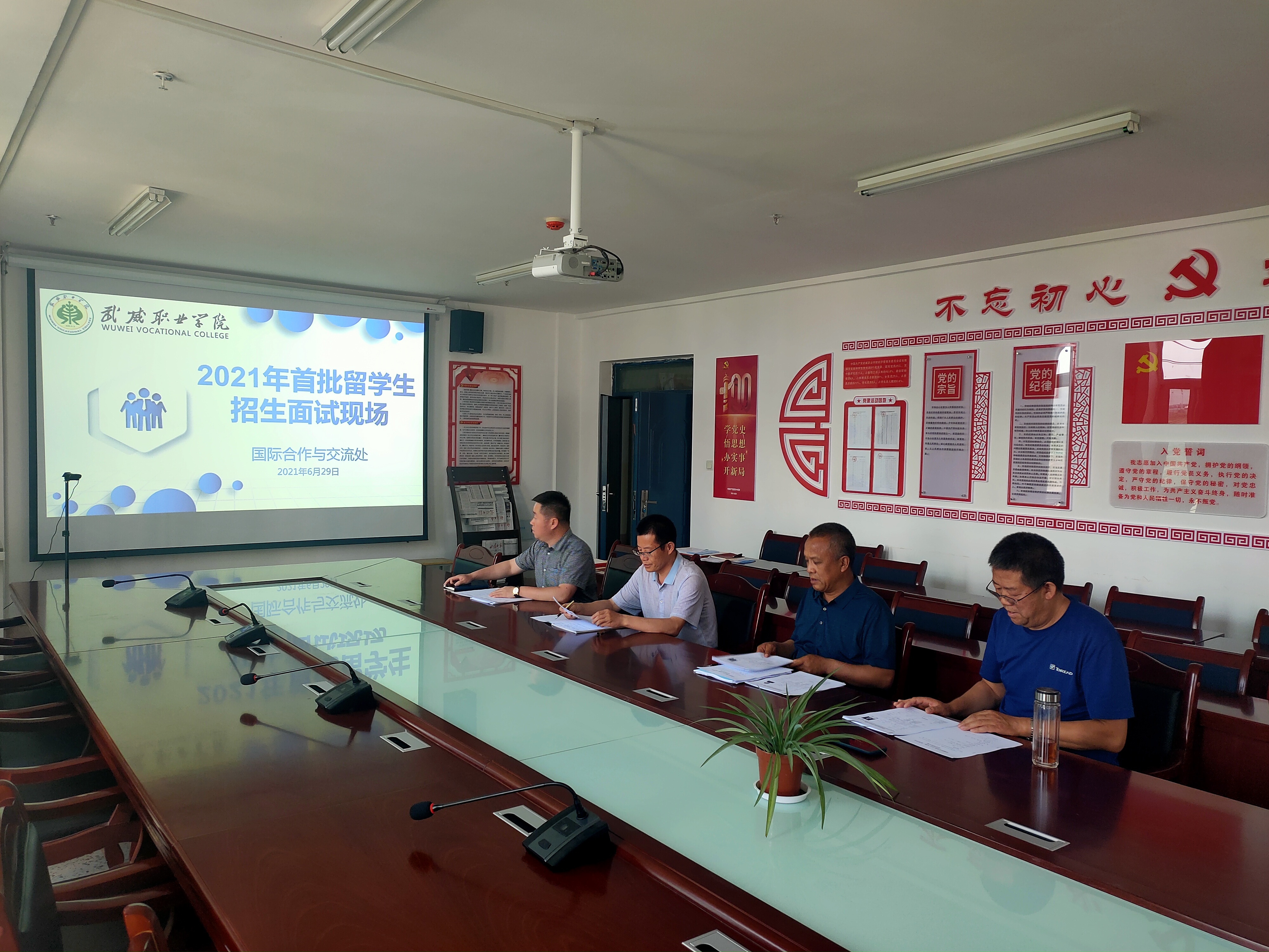 6月29日下午,學(xué)院在經(jīng)緯樓306多媒體會議室開展2021級首批來華留學(xué)生招生面試工作。黨委書記、院長趙明對來華留學(xué)生招生面試工作提出要求,來華留學(xué)生招生面試工作要嚴(yán)格遵守國家、省市有關(guān)規(guī)定和規(guī)范,要綜合考慮國家需要和社會公共利益,要服務(wù)學(xué)院“雙高”建設(shè)大局,要遵循規(guī)范、公開、公平的原則,招收和選拔有學(xué)業(yè)能力和發(fā)展?jié)摿Φ膩砣A留學(xué)生,保障和持續(xù)提高生源質(zhì)量,堅(jiān)持原則,守住底線,確保平安留學(xué)、健康留學(xué)、成功留學(xué)。