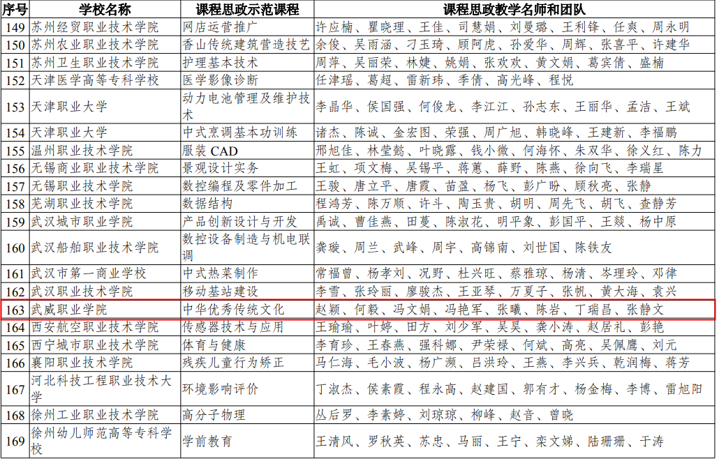 近日,教育部印發(fā)《教育部關(guān)于公布課程思政示范項(xiàng)目名單的通知》(教高函2021 7號(hào)),確定了首批699門(mén)課程思政示范課程和699個(gè)課程思政教學(xué)名師和團(tuán)隊(duì)、30個(gè)課程思政教學(xué)研究示范中心。我院《 中華優(yōu)秀傳統(tǒng)文化》課程、教學(xué)名師和團(tuán)隊(duì)成功入選教育部職業(yè)教育類(lèi)課程思政示范課程、課程思政教學(xué)名師和團(tuán)隊(duì)。
