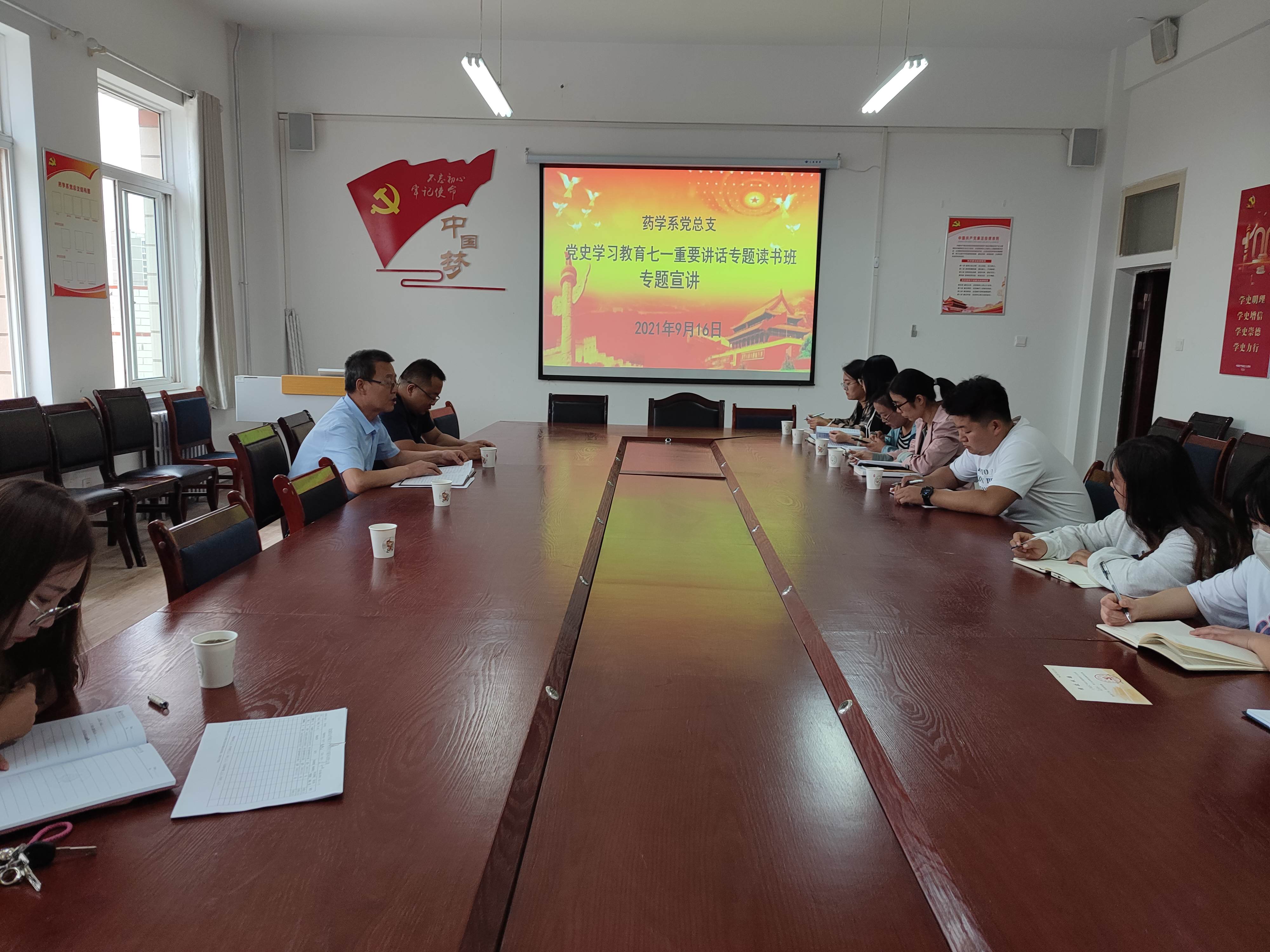 9月14日至9月17日,藥學(xué)系黨總支組織召開學(xué)習(xí)習(xí)近平總書記七一講話精神專題讀書班,系黨總支全體黨員和入黨積極分子學(xué)習(xí)參加了讀書班學(xué)習(xí),讀書班由系黨總支書記魏潤(rùn)明主持。這次“七一”講話專題讀書班,安排部署到位,活動(dòng)開展扎實(shí),交流研討結(jié)合實(shí)際,達(dá)到了預(yù)期效果。