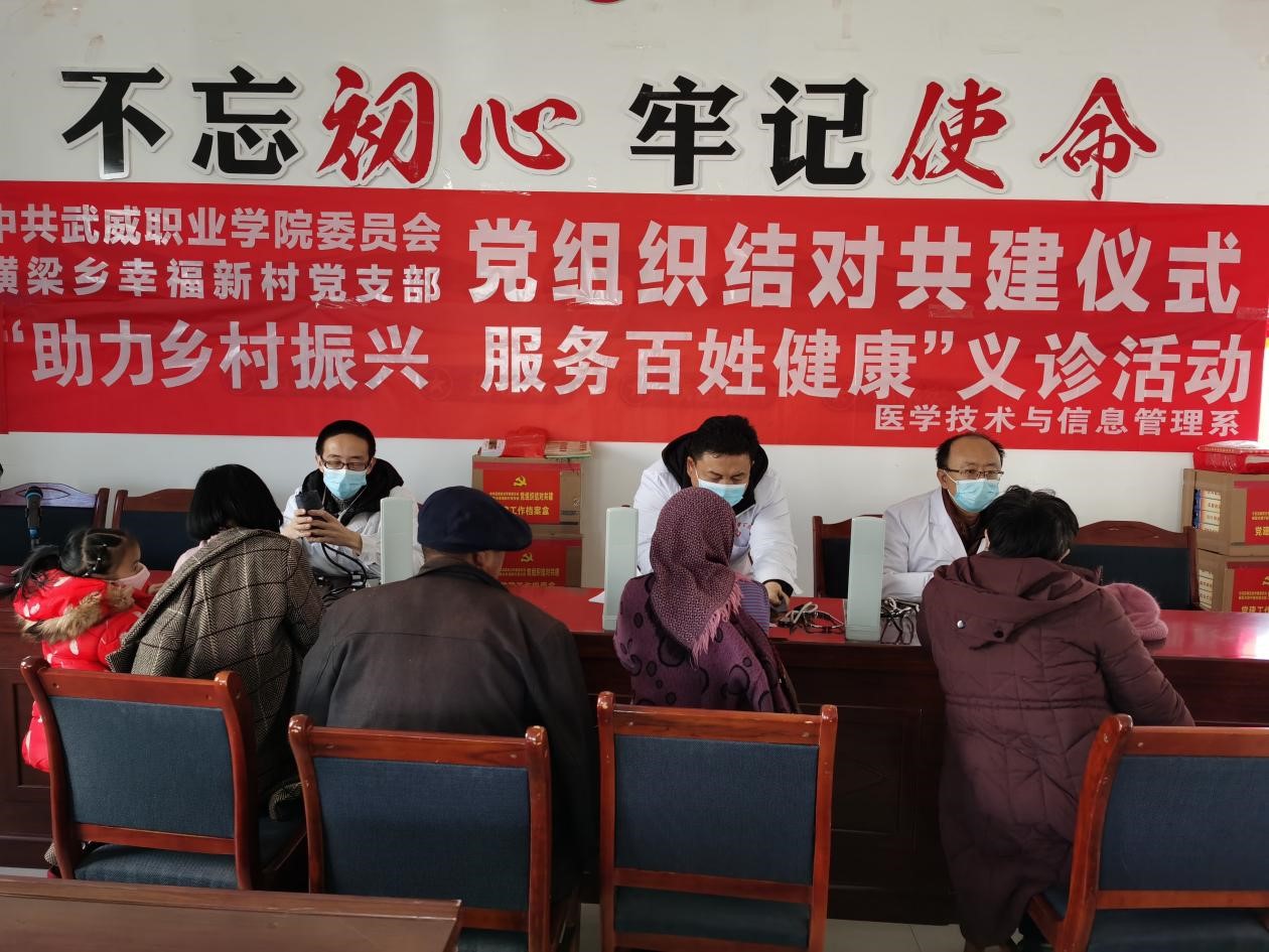 為深入學習宣傳貫徹黨的十九屆六中全會精神及武威市第五次黨代會精神,緊緊圍繞鄉(xiāng)村振興戰(zhàn)略全力落實健康扶貧等惠民政策,12月10日,醫(yī)學技術與信息管理系黨總支組織黨員和教師到古浪縣橫梁鄉(xiāng)幸福新村、康寧新村開展“助力鄉(xiāng)村振興,服務百姓健康”義診活動。