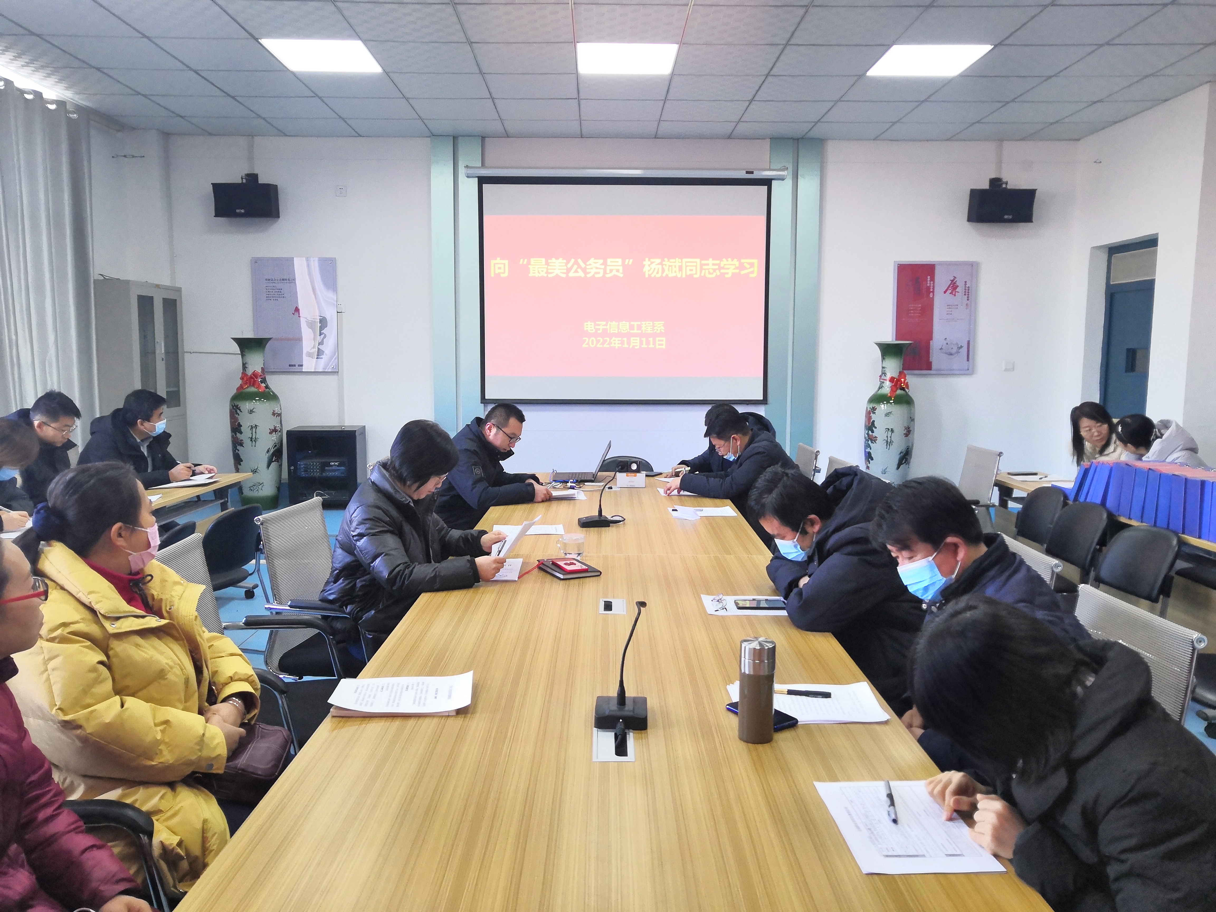 1月11日,電子信息工程系組織全體教師學習“最美公務員”楊斌同志先進事跡。