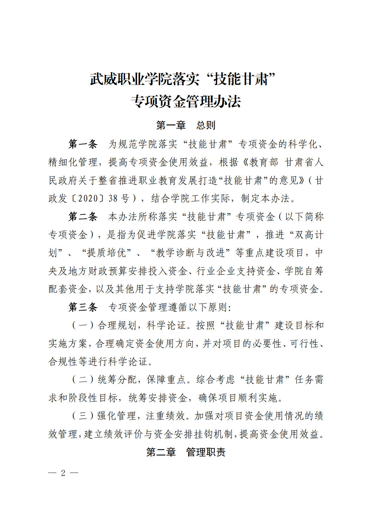 關(guān)于印發(fā)《武威職業(yè)學(xué)院落實(shí)“技能甘肅”專項(xiàng)資金管理辦法》的通知