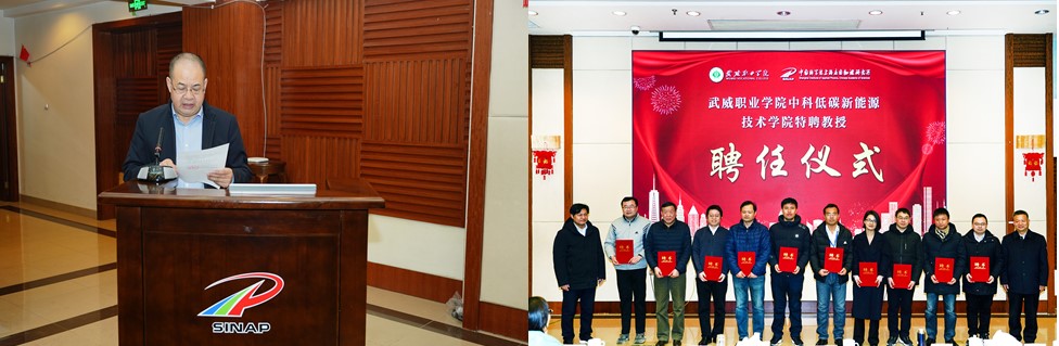 聘任儀式上,學院黨委副書記翟存祥宣讀了《武威職業(yè)學院 中國科學院上海應用物理研究所關于續(xù)聘楊存忠等17名同志擔任中科低碳新能源技術學院特聘教授的通知》。隨后,上海應用物理研究所所長戴志敏,學院黨委書記、院長趙明向17名特聘教授頒發(fā)了聘書。