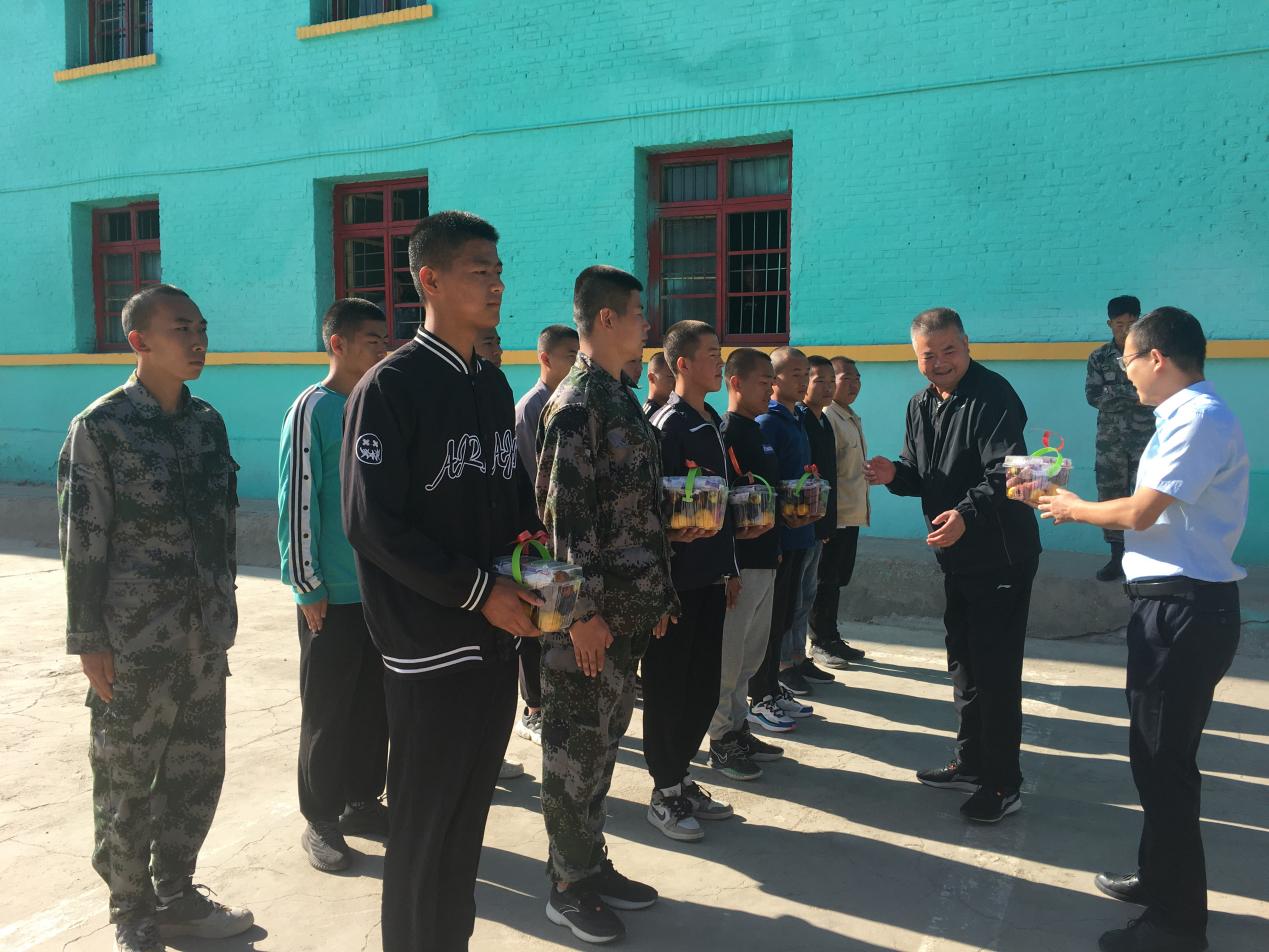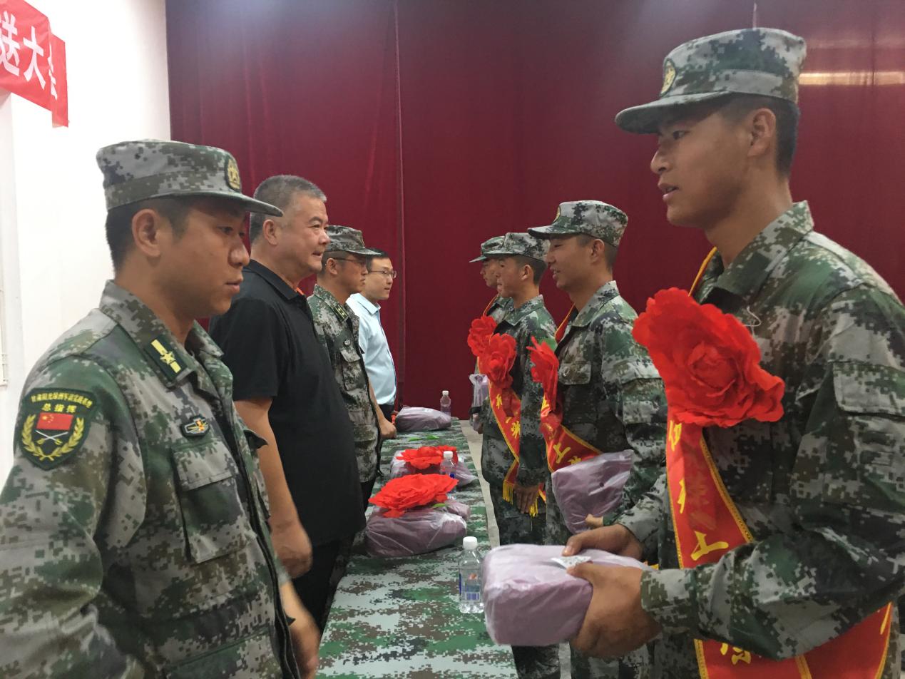 王守云詢問了同學們的近期訓練、生活情況,為同學們送上了中秋節(jié)慰問品,并代表學院向應征入伍的同學表示祝賀。