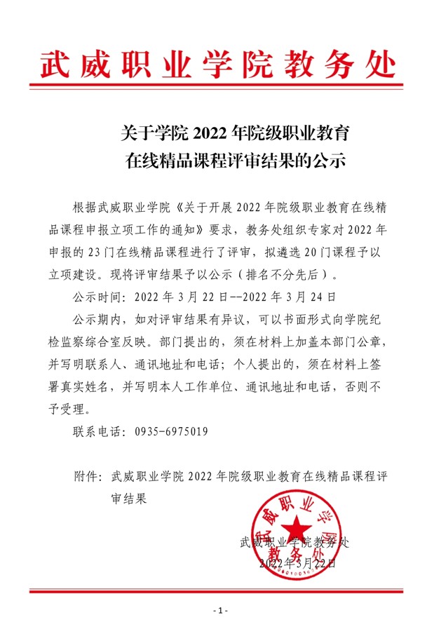 關(guān)于學(xué)院2022年院級(jí)職業(yè)教育在線(xiàn)精品課程評(píng)審結(jié)果的公示