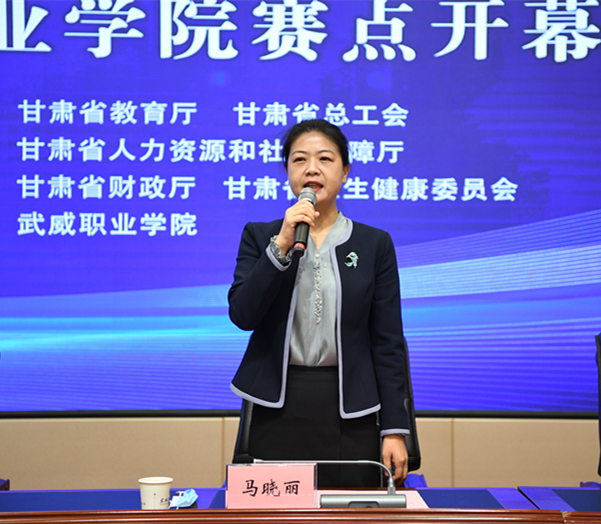 武威市教育局副局長馬曉麗宣布2022年全省職業(yè)院校技能大賽武威職業(yè)學(xué)院賽點開賽。