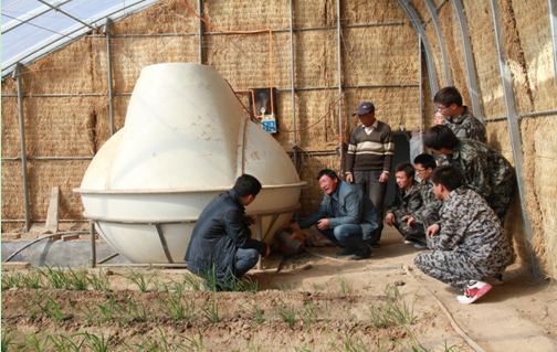 能源工程系專業(yè)教師為農(nóng)戶就沼氣池產(chǎn)生的沼渣、沼液、增溫?zé)舢a(chǎn)生的二氧化碳當(dāng)做溫室內(nèi)蔬菜生長(zhǎng)肥料與傳統(tǒng)化肥、農(nóng)藥相比產(chǎn)生的經(jīng)濟(jì)效益進(jìn)行講解,指導(dǎo)農(nóng)戶充分利用沼氣池產(chǎn)生的沼渣、沼機(jī)及氣肥提高大棚經(jīng)濟(jì)效益。