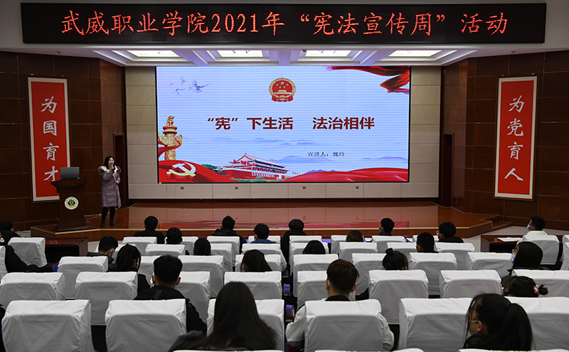 今年12月4日,是我國第八個國家憲法日。學生發(fā)展中心菁英廳內(nèi),馬克思主義學院法學專業(yè)教師魏玲進行了主題為“憲下生活法治相伴”的講座,學生代表110余人聆聽講座。