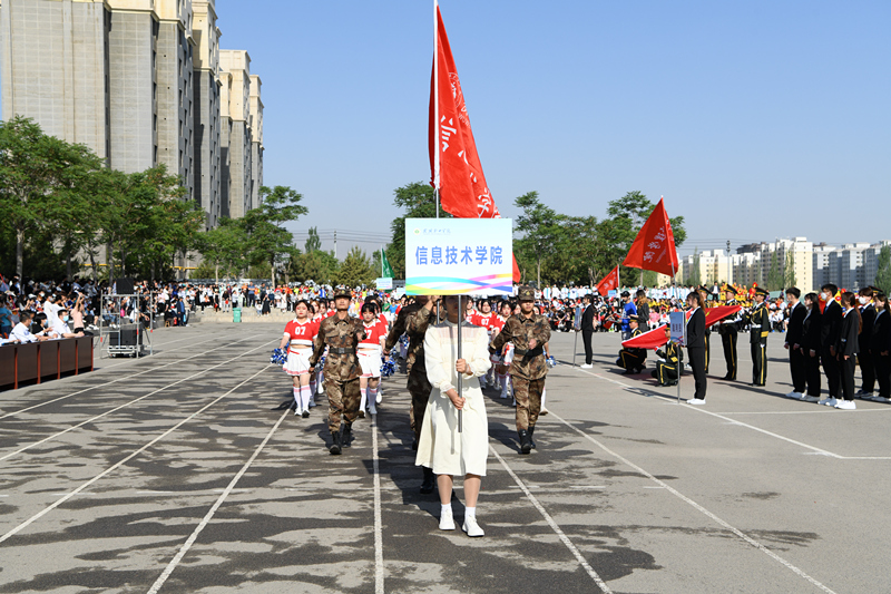 伴隨著激昂的運動員進行曲,國旗隊、彩旗隊、裁判員隊率先走過主席臺,9個代表隊方陣依次通過主席臺,接受檢閱。他們矯健的步伐,嘹亮的口號,整齊的隊伍,昂揚的風貌,充分展示了全校師生良好的精神風貌。
