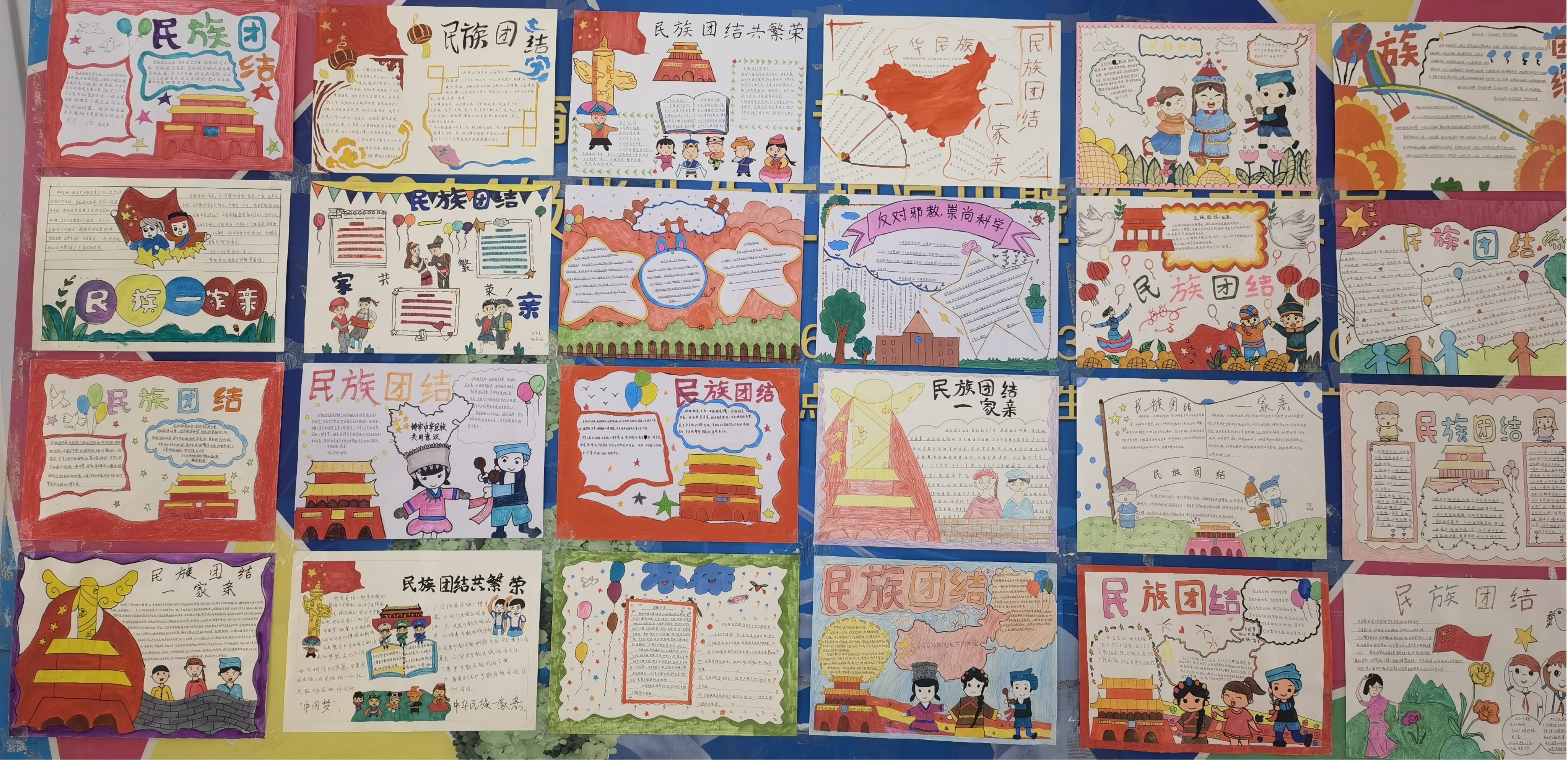 為深化民族團(tuán)結(jié)進(jìn)步教育工作,鑄牢中華民族共同體意識(shí),藝術(shù)與教育學(xué)院舉辦少數(shù)民族團(tuán)結(jié)月手抄報(bào)活動(dòng)。本次活動(dòng)結(jié)合民族團(tuán)結(jié)月,學(xué)生廣泛收集身邊的素材,運(yùn)用手抄報(bào)的形式展現(xiàn)了民族團(tuán)結(jié)一家親,一幅幅作品主題鮮明,色彩多樣,構(gòu)圖新穎。