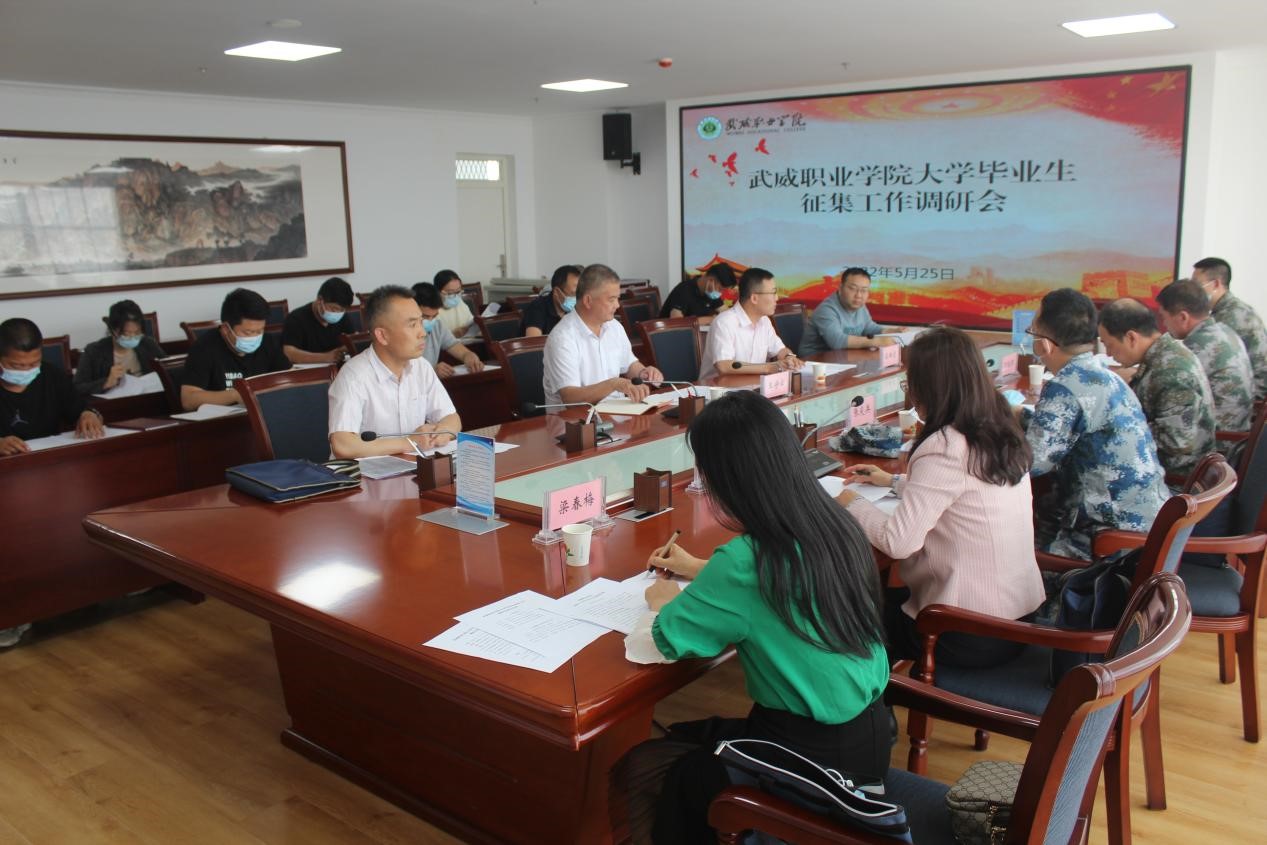 5月25日下午,武威軍分區(qū)大校范玉芳司令員帶領(lǐng)軍地工作組一行6人,來(lái)學(xué)校調(diào)研指導(dǎo)大學(xué)畢業(yè)生征兵工作。學(xué)校黨委委員、副校長(zhǎng)王守云共同調(diào)研,學(xué)校征兵工作站工作人員、輔導(dǎo)員和畢業(yè)班班主任代表參加了匯報(bào)會(huì)。