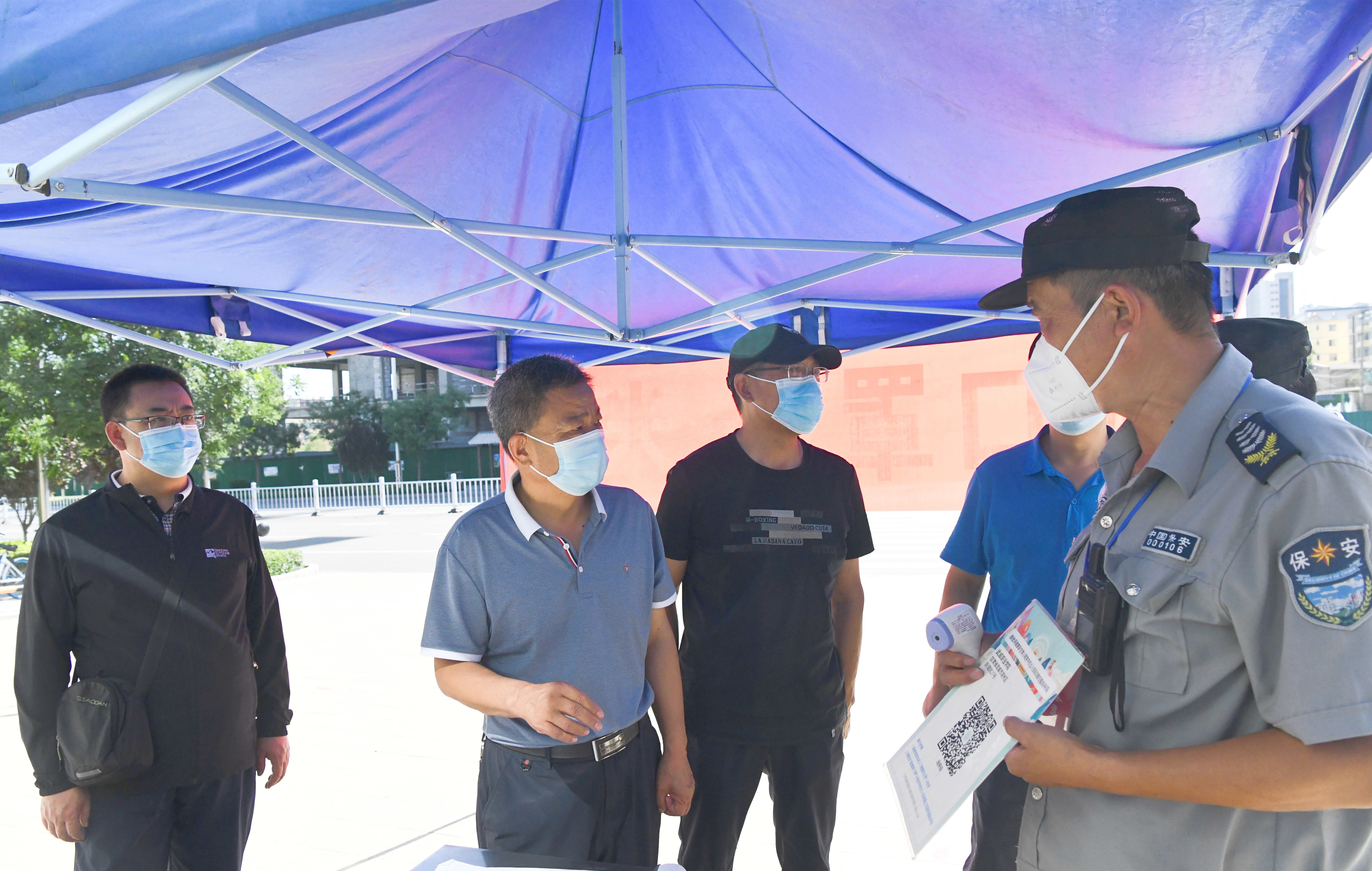在核酸檢測現(xiàn)場,趙明詳細(xì)了解學(xué)校核酸檢測采集點(diǎn)設(shè)置、流程安排、服務(wù)保障、人員安排、應(yīng)急措施等具體情況,親切慰問現(xiàn)場醫(yī)護(hù)人員、工作人員和志愿者。他指出,核酸檢測是落實(shí)“早發(fā)現(xiàn)”的首要舉措,是精準(zhǔn)防控的重要環(huán)節(jié),是有效降低傳播風(fēng)險的重要抓手。要組織好校內(nèi)人員全員核酸檢測,做好現(xiàn)場秩序維護(hù),分類、分批組織人員參加核酸檢測,嚴(yán)格落實(shí)戴口罩、“一米線”、環(huán)境消殺等防控措施,防止人員扎堆聚集。要做實(shí)做細(xì)各項(xiàng)服務(wù)保障工作,減少排隊等待時間,做好防曬措施,為一線工作人員和參檢人員創(chuàng)造更加良好的環(huán)境。