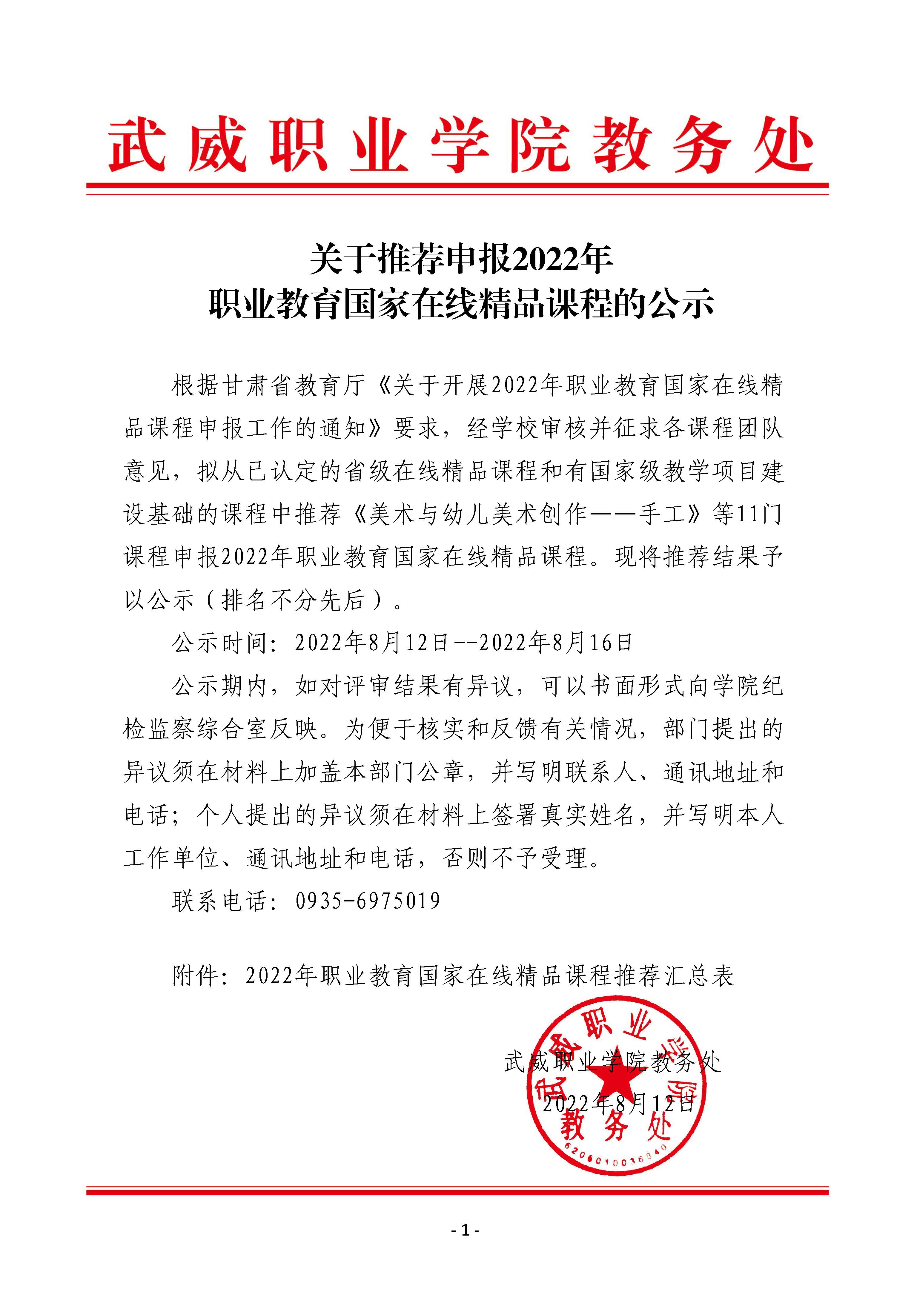 關(guān)于推薦申報(bào)2022年職業(yè)教育國(guó)家在線精品課課程的公示