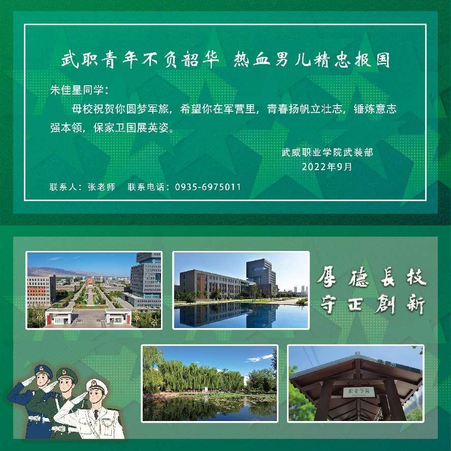 金鑫代表涼州區(qū)人武部和兵役機關,感謝武威職業(yè)學院多年來一直對征兵工作的大力支持,感謝學校為部隊輸送優(yōu)秀青年,并要求入伍大學生,嚴格訓練,做好從學生到戰(zhàn)士的迅速轉變,早日成為一名合格的人民子弟兵。