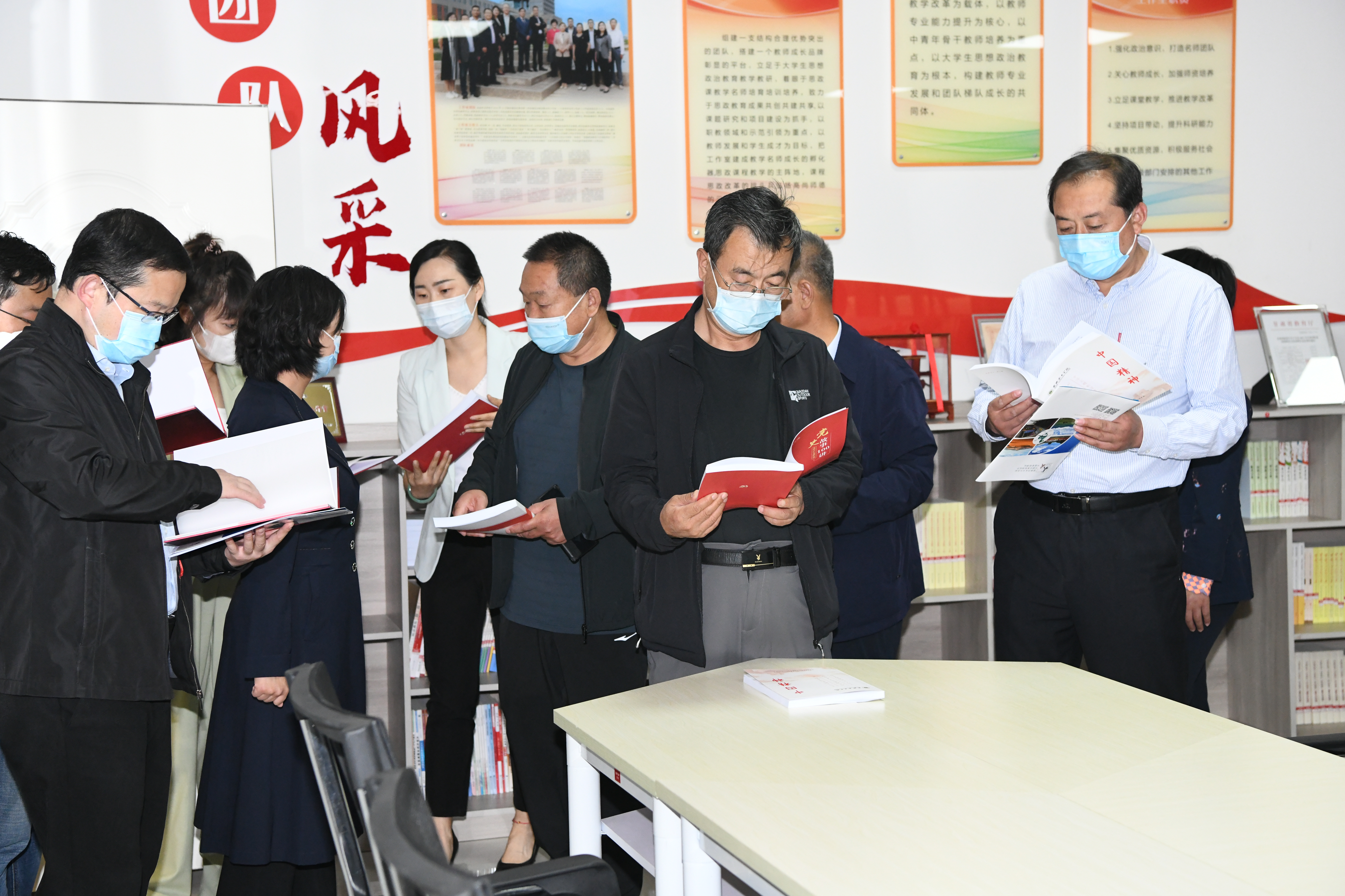 測評考核組一行先后察看了紅色文化藝術(shù)館、思政課名師工作室、名班主任工作室、傳統(tǒng)文化體驗中心、非遺體驗中心、中科低碳新能源技術(shù)學(xué)院實驗實訓(xùn)室、學(xué)校觀景平臺、藝術(shù)與教育學(xué)院實訓(xùn)室、心理健康教育中心、菁英廳、體育館、體育場、學(xué)生食堂、學(xué)生公寓等場所,實地查看了學(xué)校開展文明校園創(chuàng)建的的情況。