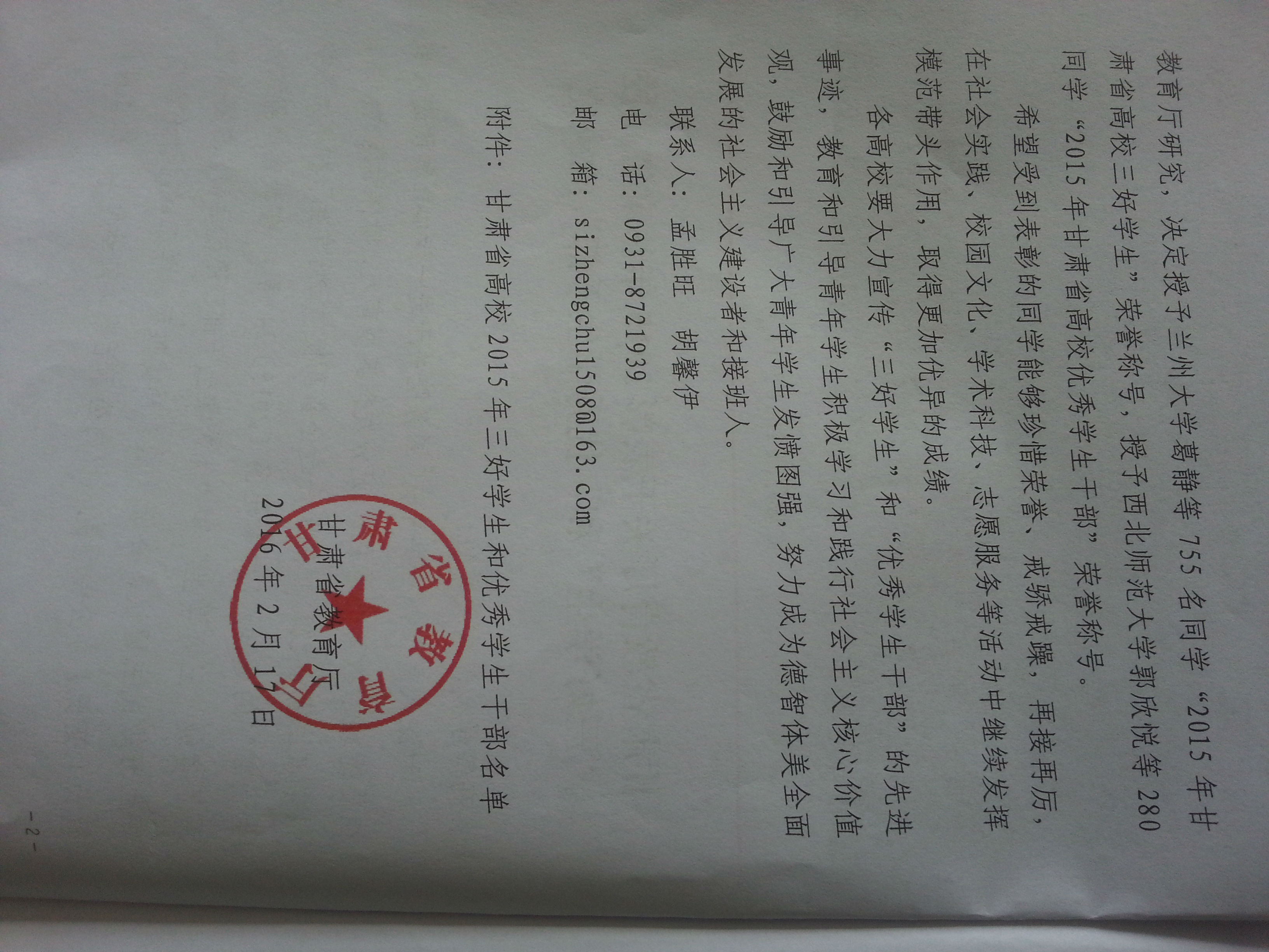 甘肅省教育廳關(guān)于表彰2015年甘肅省高?!叭脤W(xué)生”和“優(yōu)秀學(xué)生干部”的決定