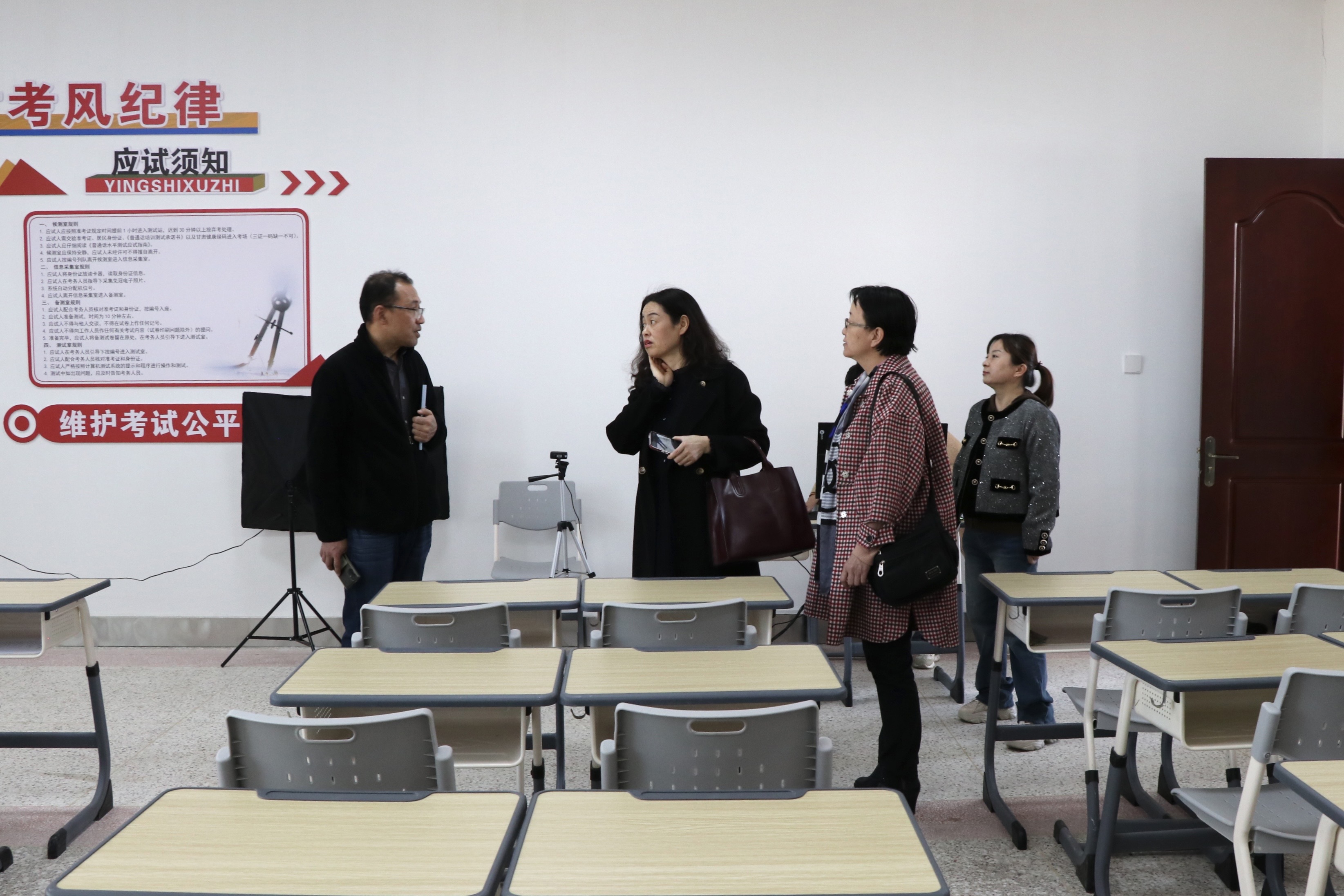 近日,甘肅省語言文字專家咨詢委員、蘭州理工大學(xué)教授魏琳一行三人對(duì)我校普通話測試新建機(jī)房進(jìn)行了評(píng)估驗(yàn)收。學(xué)校副校長田迎春及語委辦工作人員參加了驗(yàn)收工作。