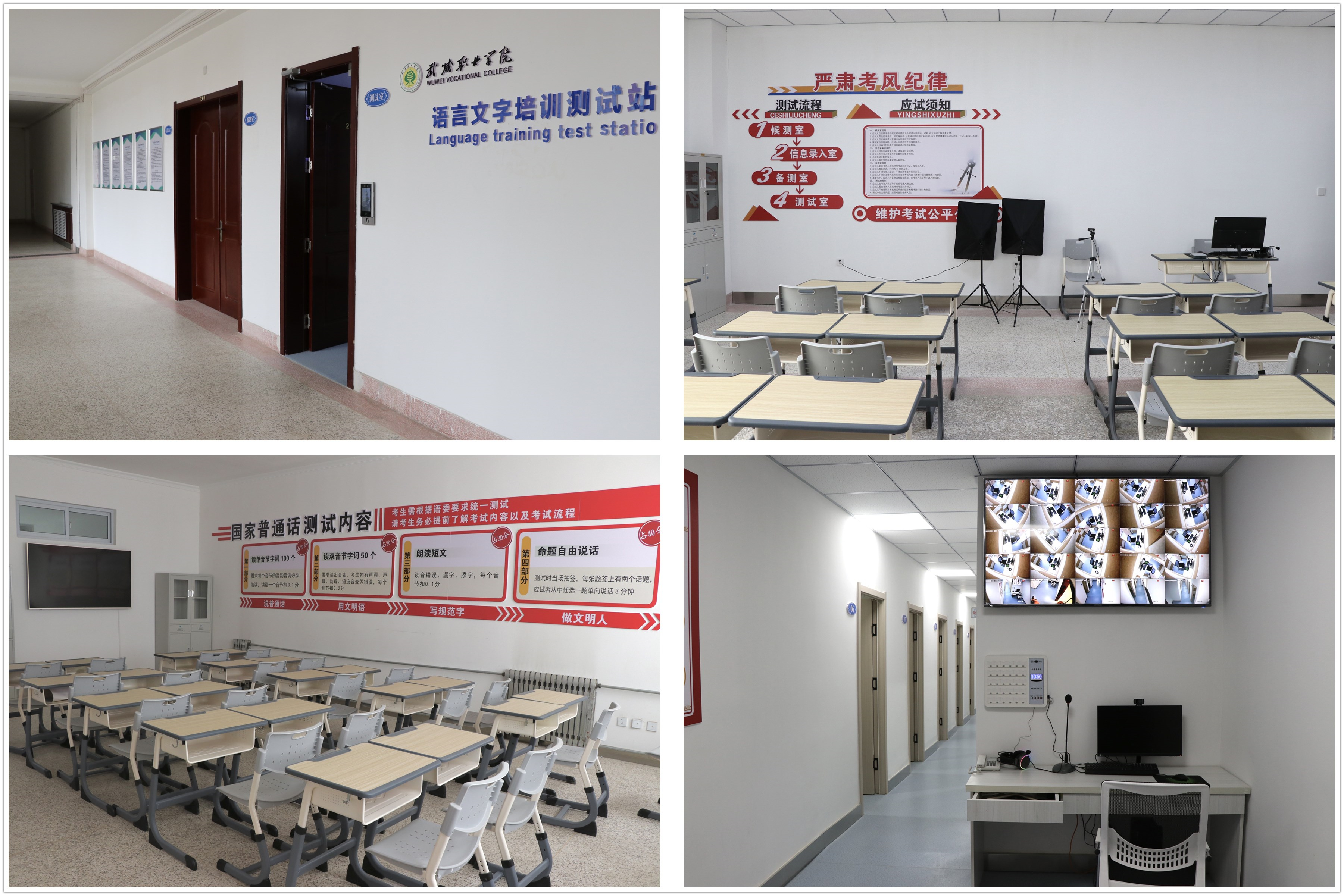 2003年建校起,學(xué)校承接武威市普通話培訓(xùn)測試任務(wù),2008年,我校語言文字培訓(xùn)測試站獲批建設(shè)。學(xué)校對(duì)普通話培訓(xùn)測試工作高度重視,努力為廣大師生搭建普通話水平培訓(xùn)測試優(yōu)質(zhì)服務(wù)平臺(tái),2019年將“普通話標(biāo)準(zhǔn)化測試機(jī)房建設(shè)項(xiàng)目”列入學(xué)?!半p高”計(jì)劃建設(shè)項(xiàng)目,投入61萬余元,于2022年10月建成。