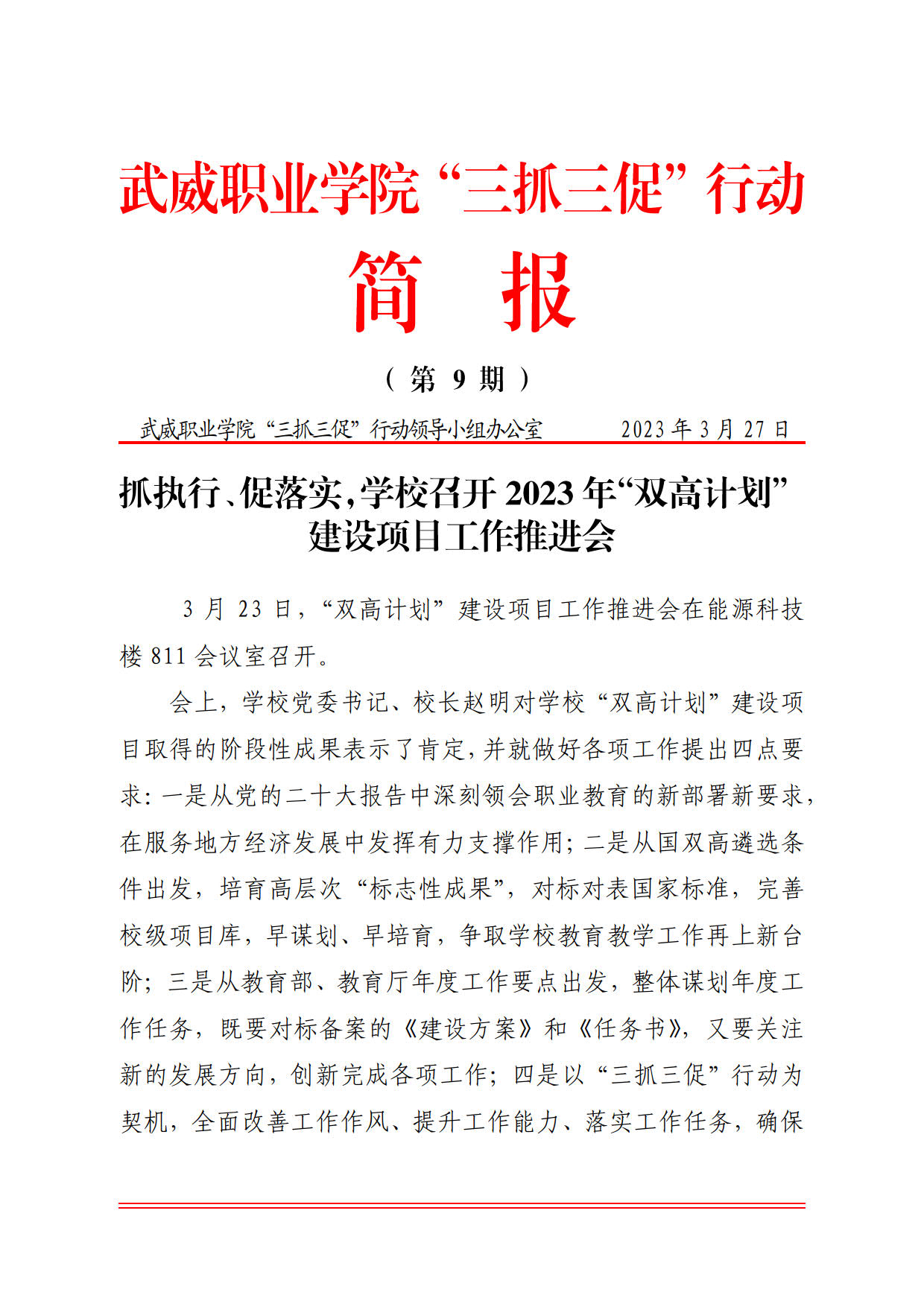 簡(jiǎn)報(bào)第9期:抓執(zhí)行、促落實(shí),學(xué)校召開(kāi)2023年“雙高計(jì)劃”建設(shè)項(xiàng)目工作推進(jìn)會(huì)