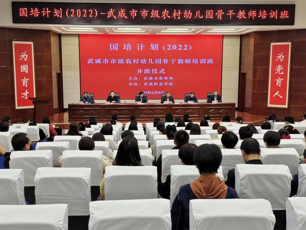 ? ? ? ?4月9日,由武威市教育局主辦、武威職業(yè)學(xué)院承辦的“國培計(jì)劃(2022)”武威市市級農(nóng)村幼兒園骨干教師能力提升培訓(xùn)班在武威職業(yè)學(xué)院舉行開班儀式,并正式授課。