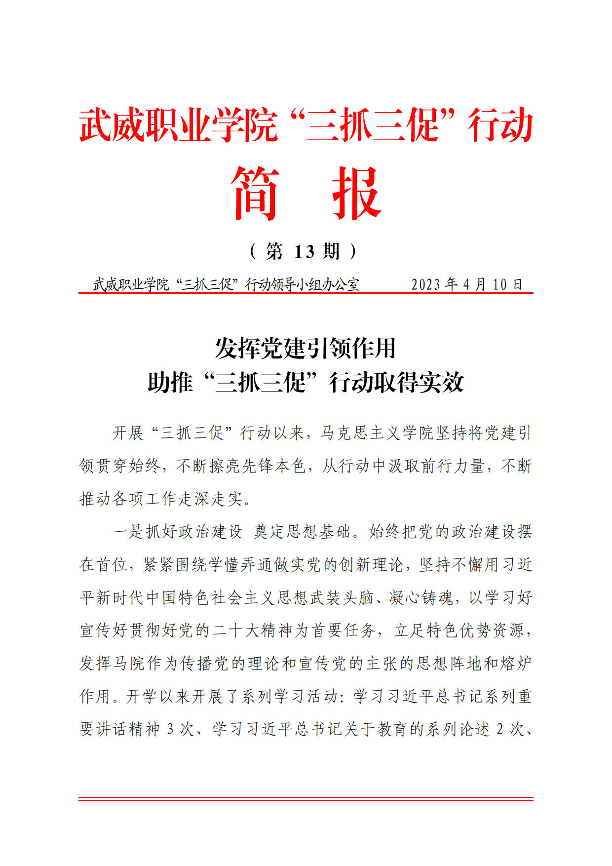 簡報第13期:發(fā)揮黨建引領(lǐng)作用 助推“三抓三促”行動取得實效