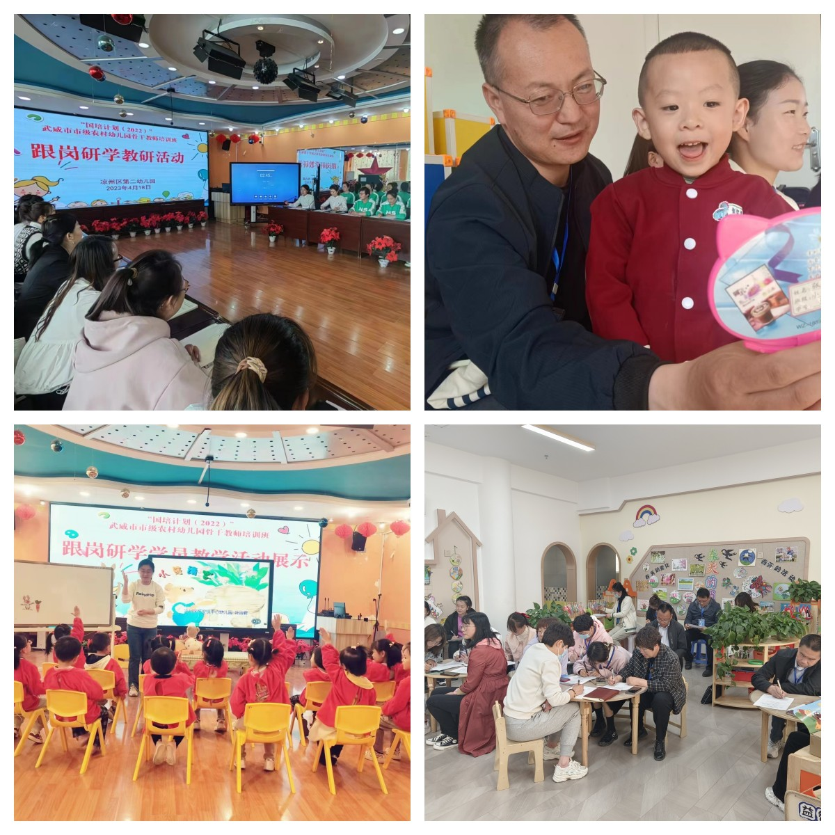 在跟崗研修期間,學(xué)員們分組進(jìn)入武威市實(shí)驗(yàn)幼兒園、武威市第二實(shí)驗(yàn)幼兒園、涼州區(qū)第一、第二、第四幼兒園進(jìn)行跟崗學(xué)習(xí)。走進(jìn)幼兒園,感受優(yōu)美的園所環(huán)境和先進(jìn)辦園理念,學(xué)習(xí)幼兒園班級(jí)建設(shè)、區(qū)角打造、環(huán)境布置、課程設(shè)置等。走進(jìn)課堂,觀摩優(yōu)質(zhì)示范課,同課異構(gòu)課,體智能特色課,開(kāi)展聽(tīng)課、講課、評(píng)課、議課、研討交流活動(dòng),體驗(yàn)先進(jìn)的學(xué)前教育理念,增強(qiáng)了全體學(xué)員扎根學(xué)前教育的熱情和信念,開(kāi)拓的學(xué)員眼界,提升了業(yè)務(wù)能力。4月21日,各幼兒園開(kāi)展跟崗研修總結(jié)活動(dòng),導(dǎo)師學(xué)員談收獲,談體會(huì),在團(tuán)隊(duì)共進(jìn)中內(nèi)化學(xué)習(xí)內(nèi)容。