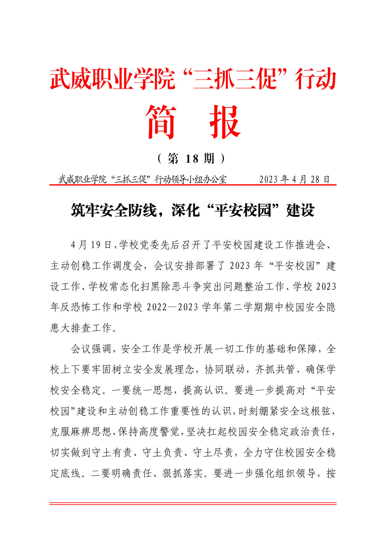 簡報(bào)第18期:筑牢安全防線,深化“平安校園”建設(shè)