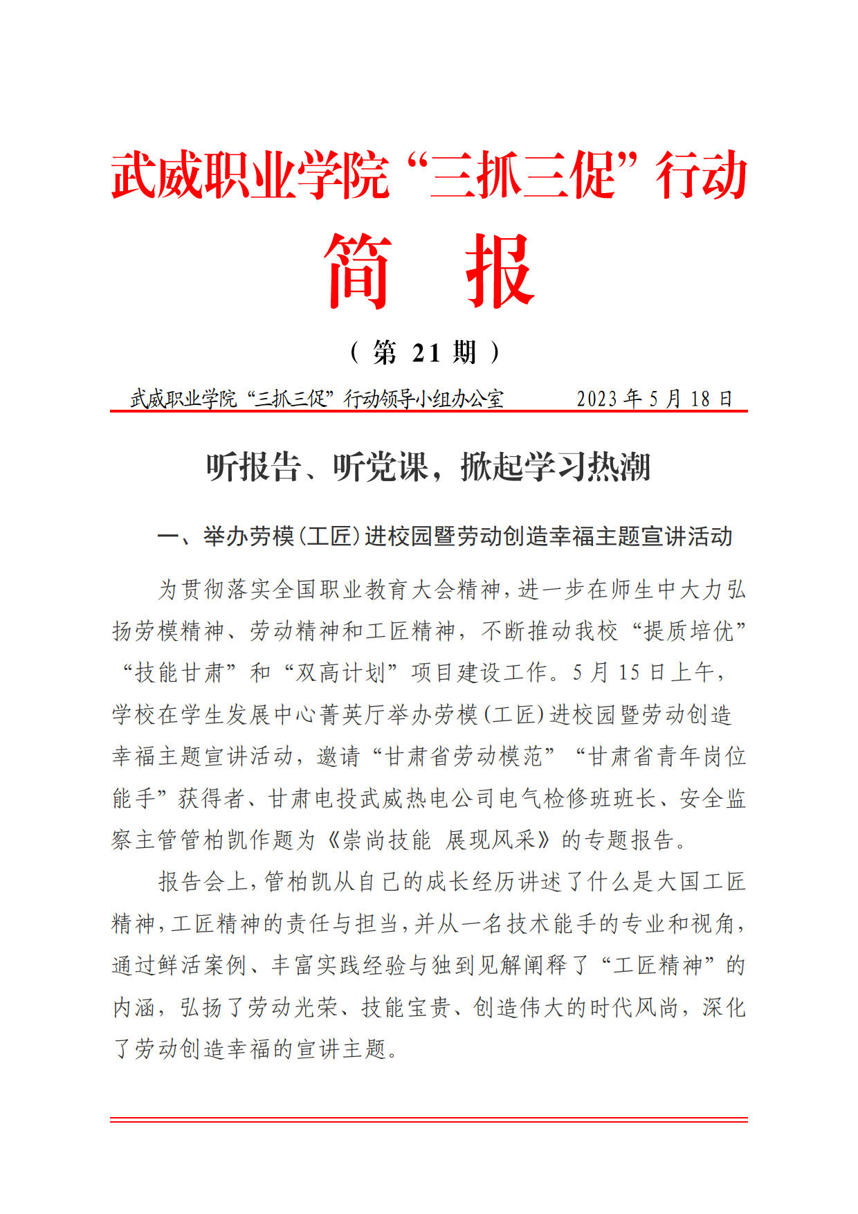 簡報(bào)第21期:聽報(bào)告,聽黨課,掀起學(xué)習(xí)熱潮