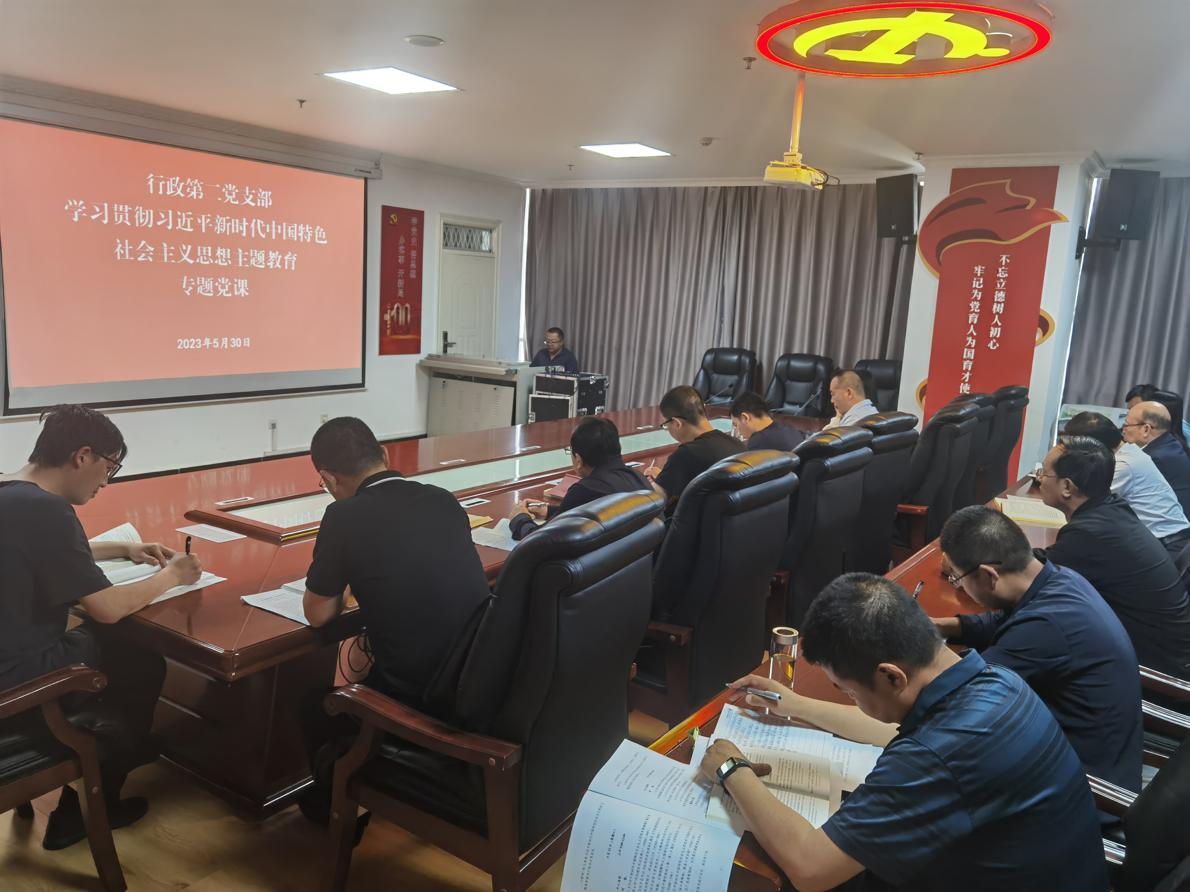 5月30日下午,行政第二黨支部書記魏全民在810會議室以《學(xué)習(xí)新思想 奮進(jìn)新征程 建功新時代》為題,并結(jié)合個人學(xué)思踐悟和教育教學(xué)工作實(shí)際,講授學(xué)習(xí)貫徹習(xí)近平新時代中國特色社會主義思想主題教育專題黨課,行政第二黨支部全體黨員參加。