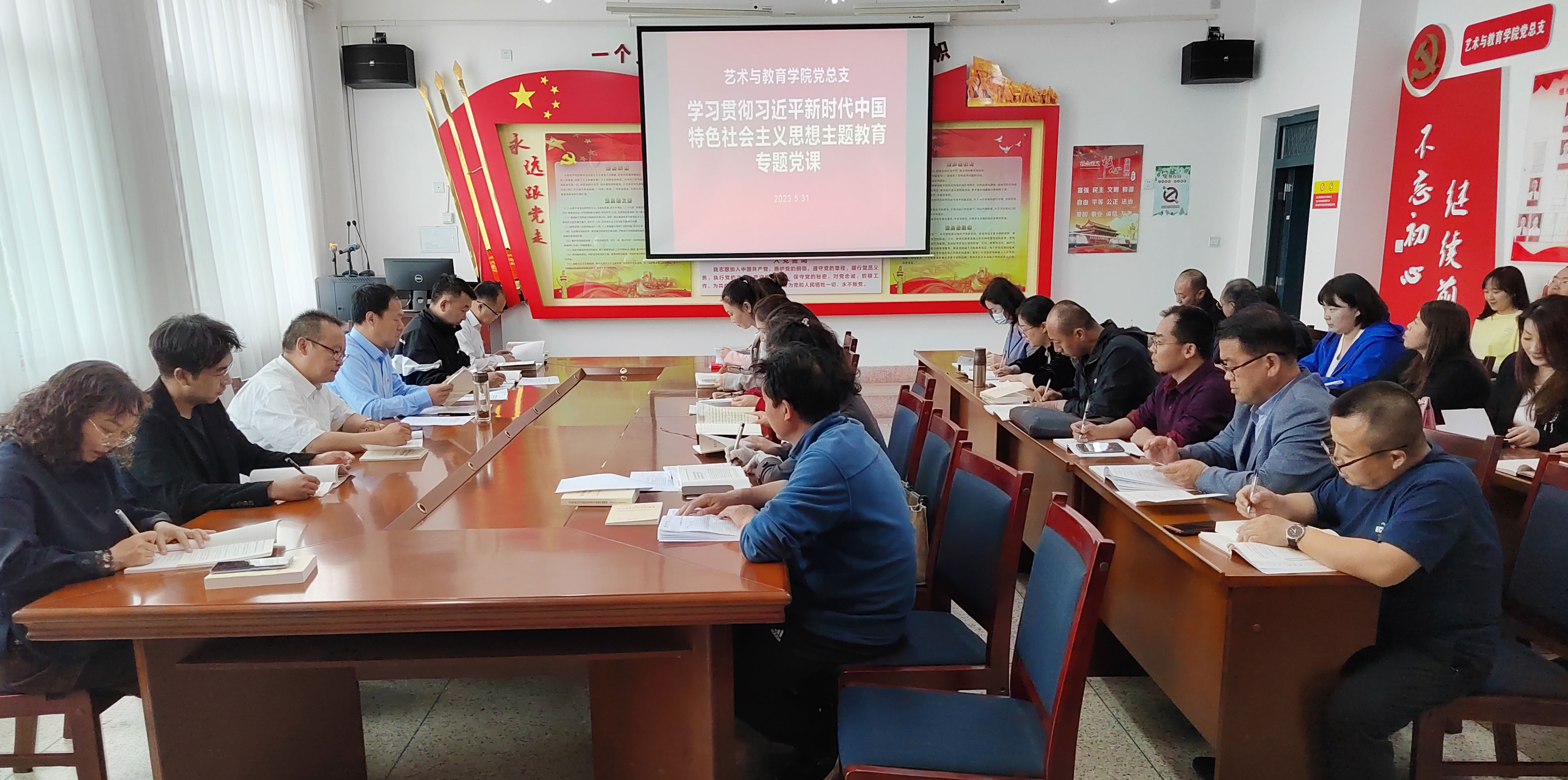 5月31日下午,藝術(shù)與教育學(xué)院黨總支書(shū)記王政在勵(lì)勤樓209會(huì)議室以《深刻領(lǐng)會(huì)新思想精髓推動(dòng)學(xué)院高質(zhì)量發(fā)展》為題,并結(jié)合個(gè)人學(xué)思踐悟和教育教學(xué)工作實(shí)際,講授學(xué)習(xí)貫徹習(xí)近平新時(shí)代中國(guó)特色社會(huì)主義思想主題教育專題黨課,藝術(shù)與教育學(xué)院黨總支全體黨員參加。
