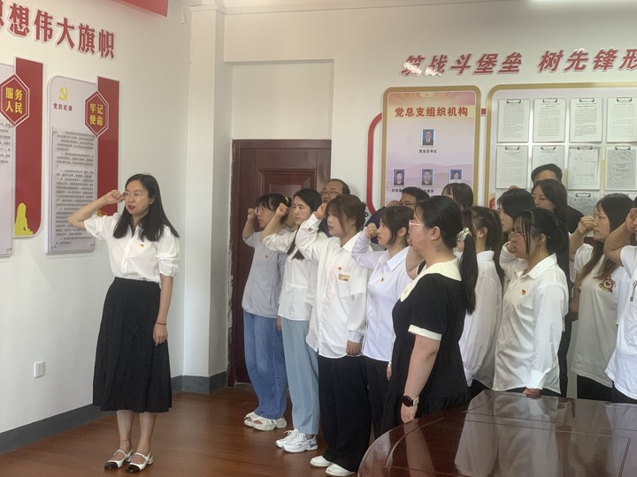 教師黨員趙文杰帶領(lǐng)全體預(yù)備黨員進行入黨宣誓,全體老黨員重溫入黨誓詞。黨員們集體面向黨旗,舉起右拳,跟隨領(lǐng)誓人宣誓,鄭重許下對黨的承諾,表達著自己為共產(chǎn)主義事業(yè)奮斗終身的決心。每位黨員都接受了一次深刻的思想洗禮,更加明確了新時代黨員的責任擔當。