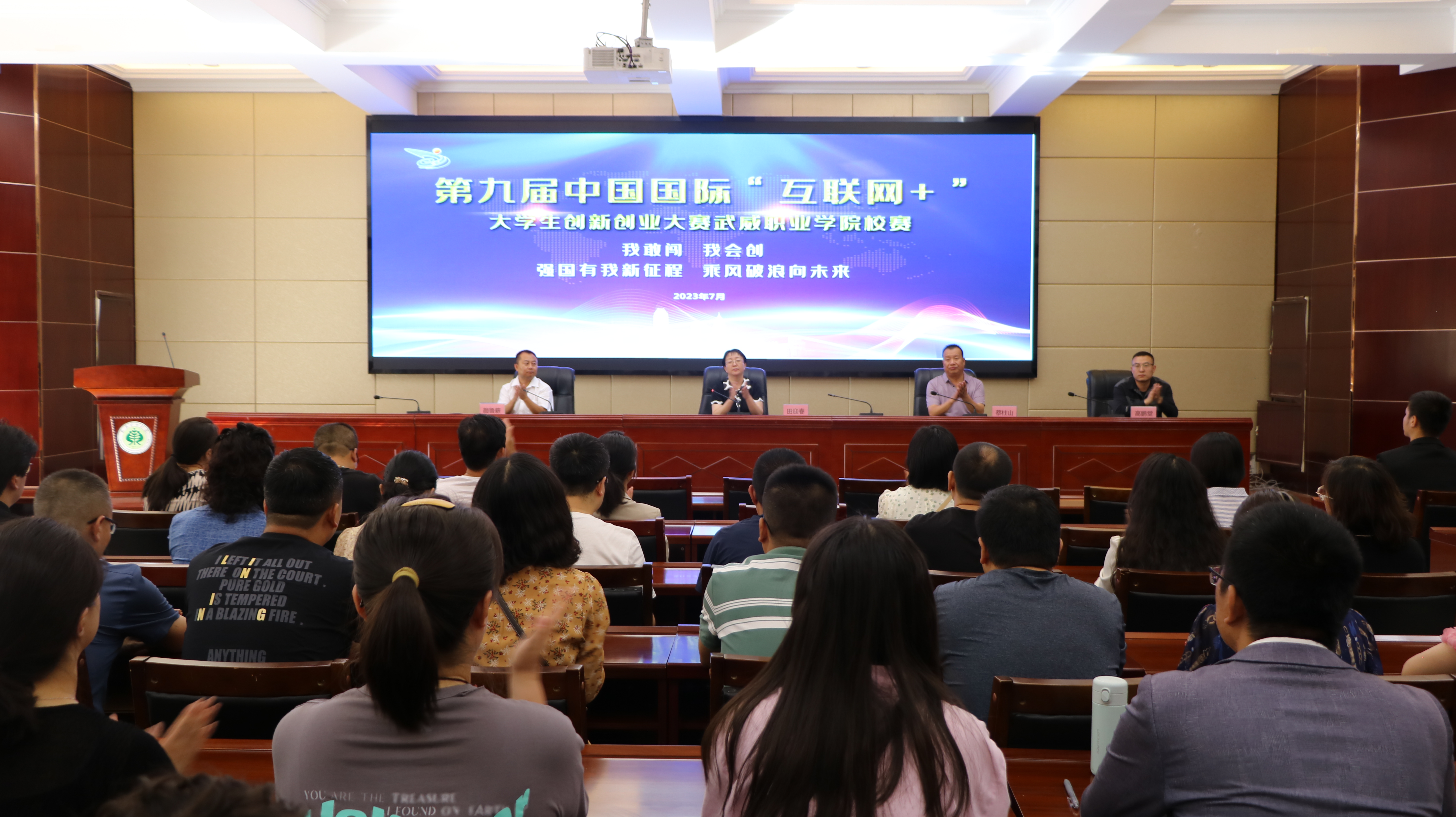 7月8日,我校舉行第九屆中國(guó)國(guó)際“互聯(lián)網(wǎng)+”大學(xué)生創(chuàng)新創(chuàng)業(yè)大賽校級(jí)決賽,開(kāi)幕式在行樹(shù)樓報(bào)告廳召開(kāi)。