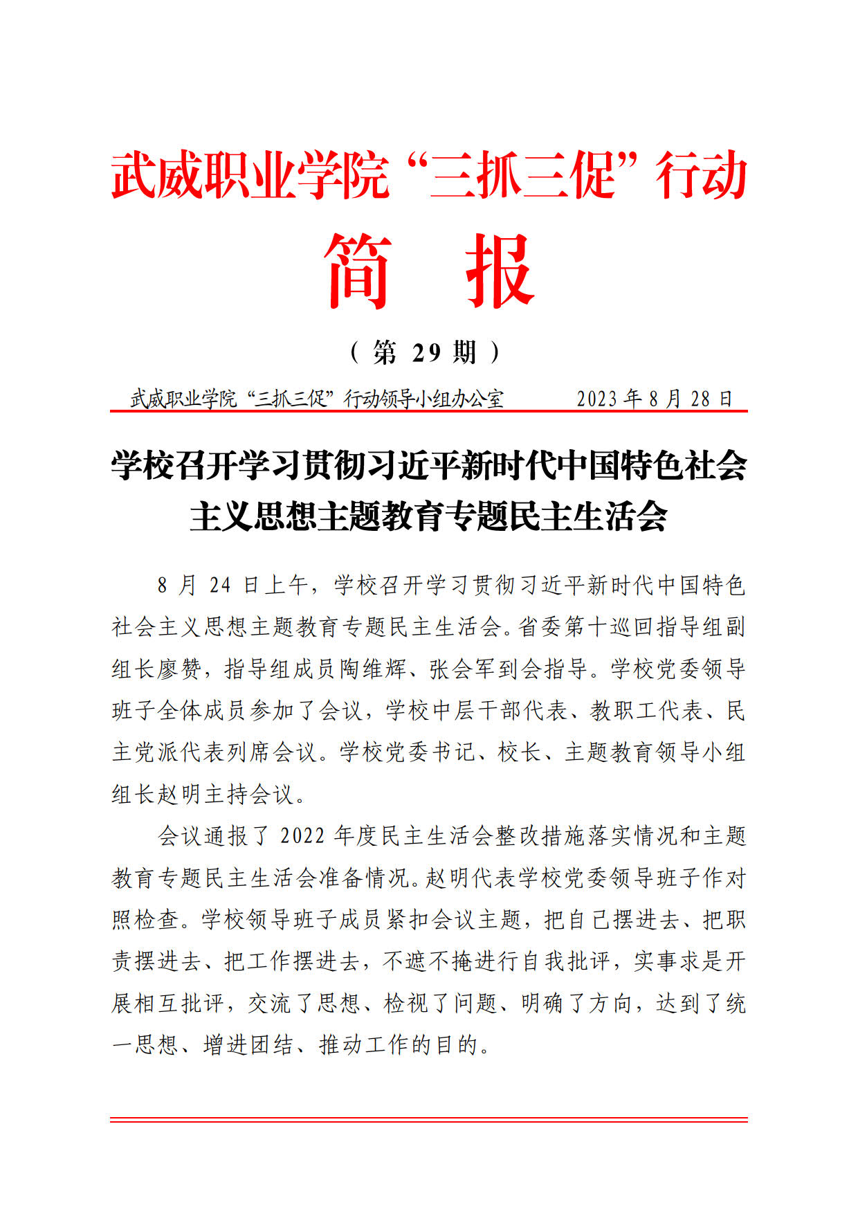 簡報(bào)第29期:學(xué)校召開學(xué)習(xí)貫徹習(xí)近平新時(shí)代中國特色社會(huì)主義思想主題教育專題民主生活會(huì)