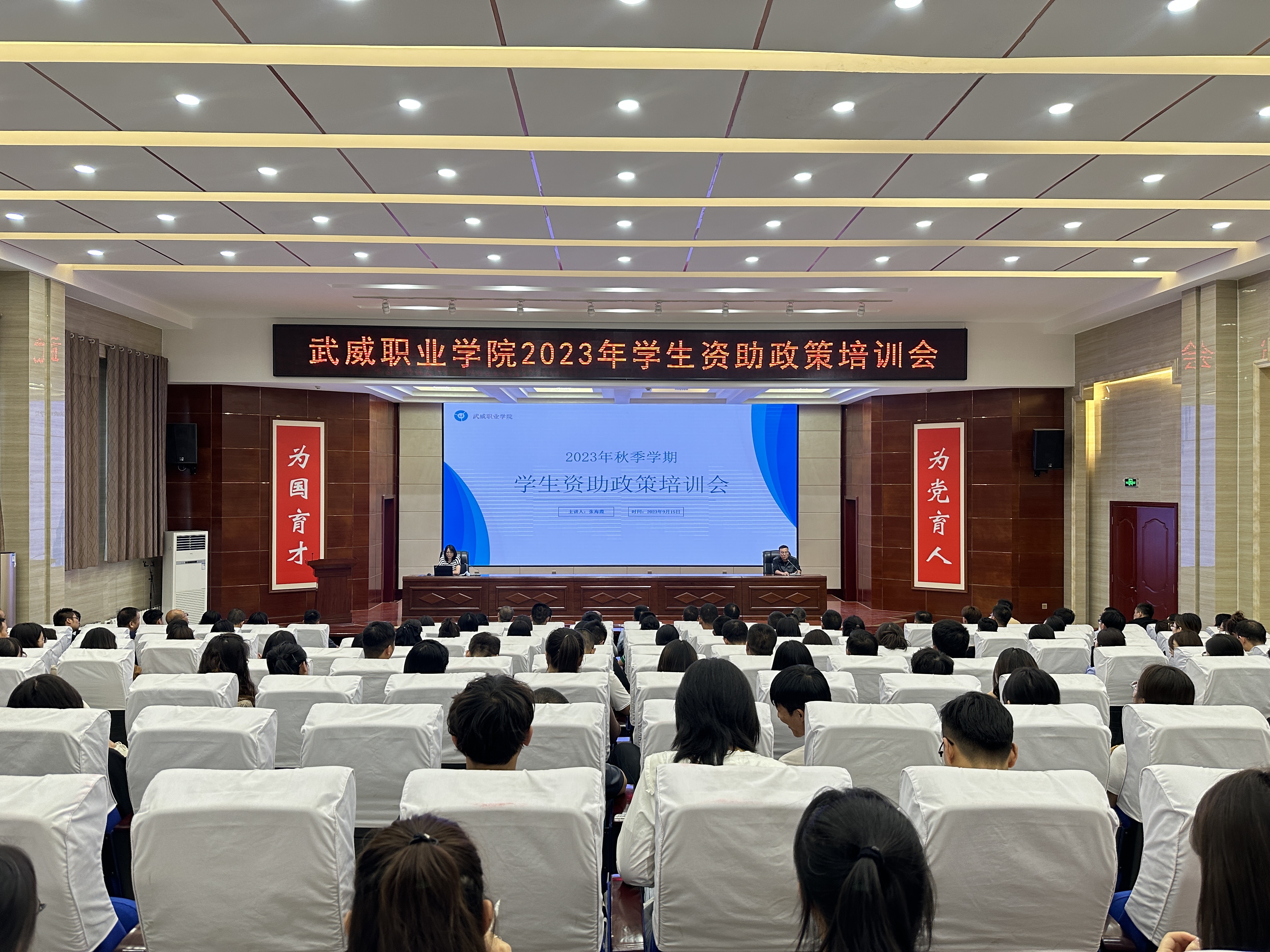 9月15日下午,學(xué)校學(xué)生資助管理中心在菁英廳舉辦2023年秋季學(xué)期學(xué)生資助工作培訓(xùn)會,全體輔導(dǎo)員和班主任參加。