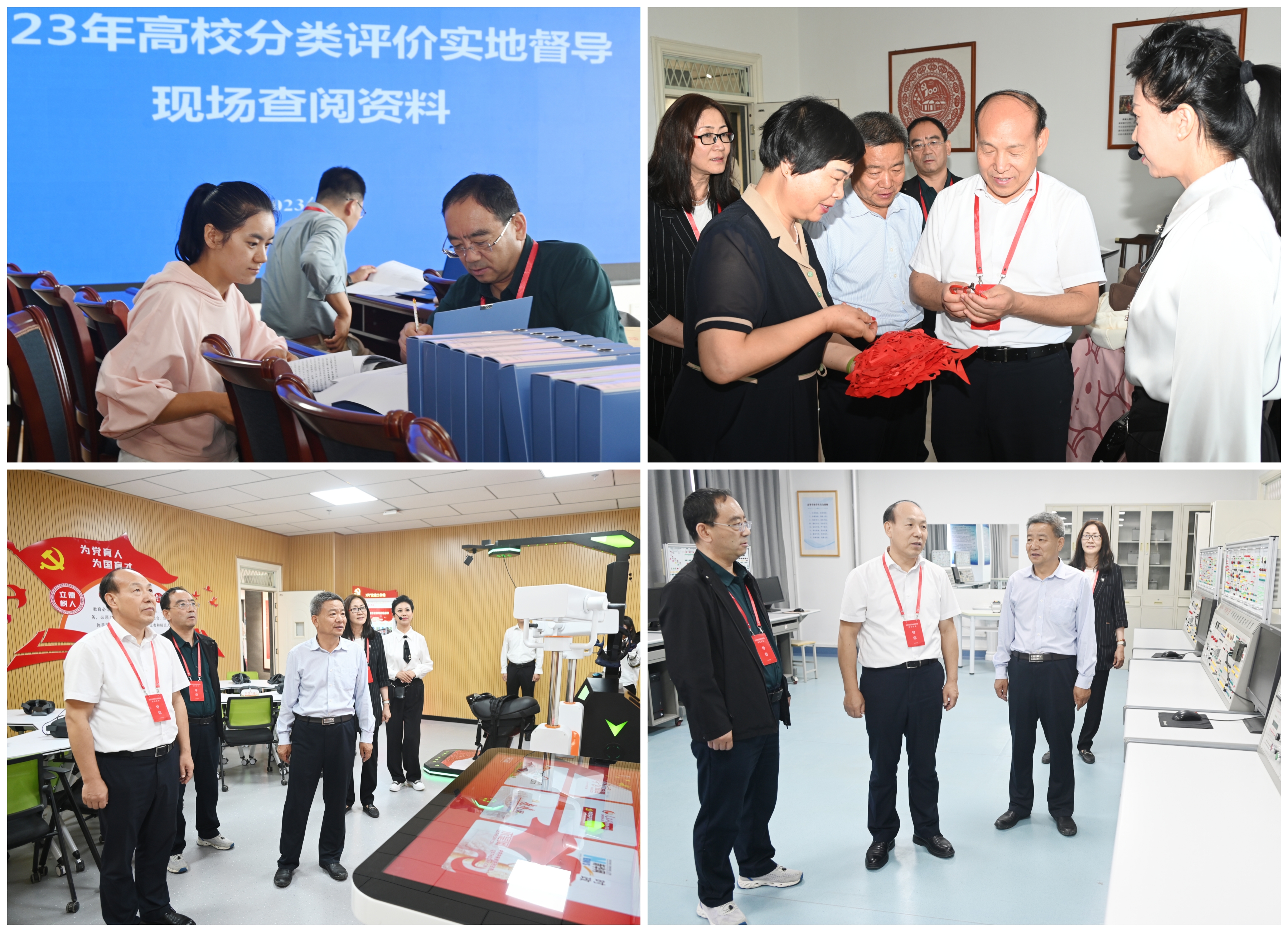 督導期間,專家組現(xiàn)場詳細查閱了資料,深入我校課程思政教學研究示范中心、紅色文化藝術館、名師工作室、傳統(tǒng)文化體驗中心、非遺體驗中心、VR智慧黨建體驗館、運動場所、學生食堂、公寓管理中心及中科低碳新能源技術學院專業(yè)實驗實訓室等教育教學、實驗實訓、科研平臺開展實地考察。