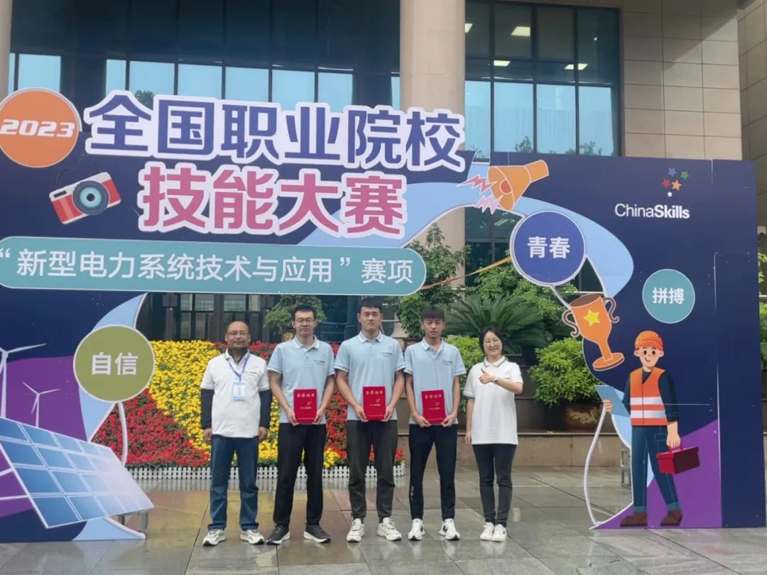 在2023年全國職業(yè)院校技能大賽中中科低碳新能源技術學院學生陳德平、徐浩芝、蘆紀維獲得高職組新型電力系統(tǒng)技術與應用賽項團體三等獎。