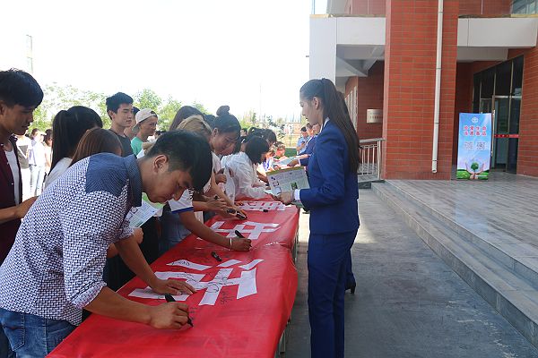 活動(dòng)中,王主瑞介紹了我國(guó)禁毒工作的基本情況和面臨的嚴(yán)峻形勢(shì),強(qiáng)調(diào)了青年毒品預(yù)防的重要性。學(xué)生代表王波波宣讀了禁毒倡議書(shū),青年志愿者發(fā)放禁毒宣傳材料2000余份,在場(chǎng)師生在“青春無(wú)毒·健康生活”主題條幅上進(jìn)行承諾簽名并觀看了毒品預(yù)防知識(shí)宣傳展板。