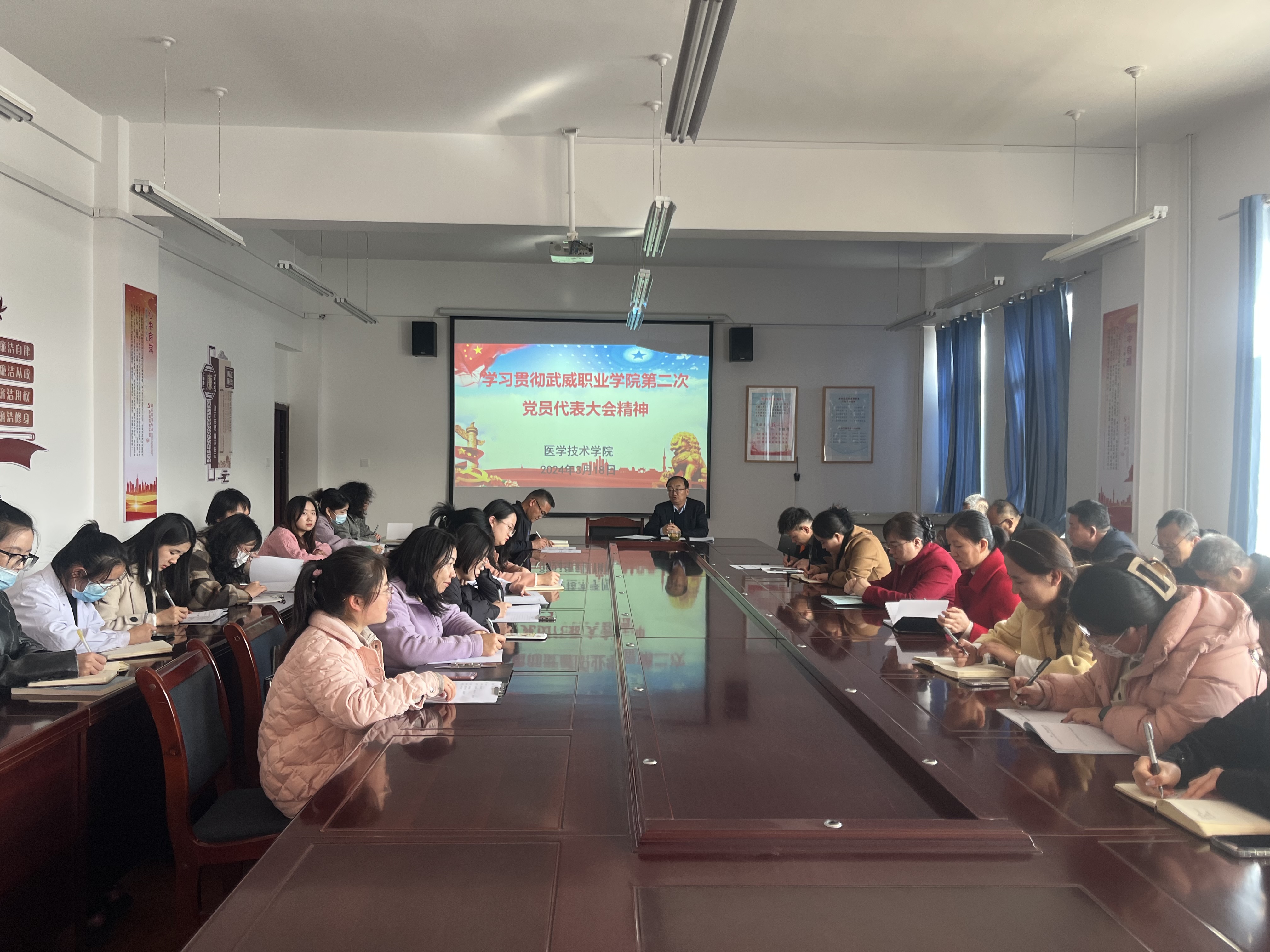3月13日,中國共產(chǎn)黨武威職業(yè)學(xué)院第二次代表大會在我校召開。為學(xué)習(xí)貫徹會議精神,3月18日下午,醫(yī)學(xué)技術(shù)學(xué)院召開全體教職工會議傳達學(xué)校第二次代表大會精神,會議以“學(xué)習(xí)貫徹中國共產(chǎn)黨武威職業(yè)學(xué)院第二次代表大會精神”為主題,結(jié)合醫(yī)學(xué)技術(shù)學(xué)院實際提出落實舉措。