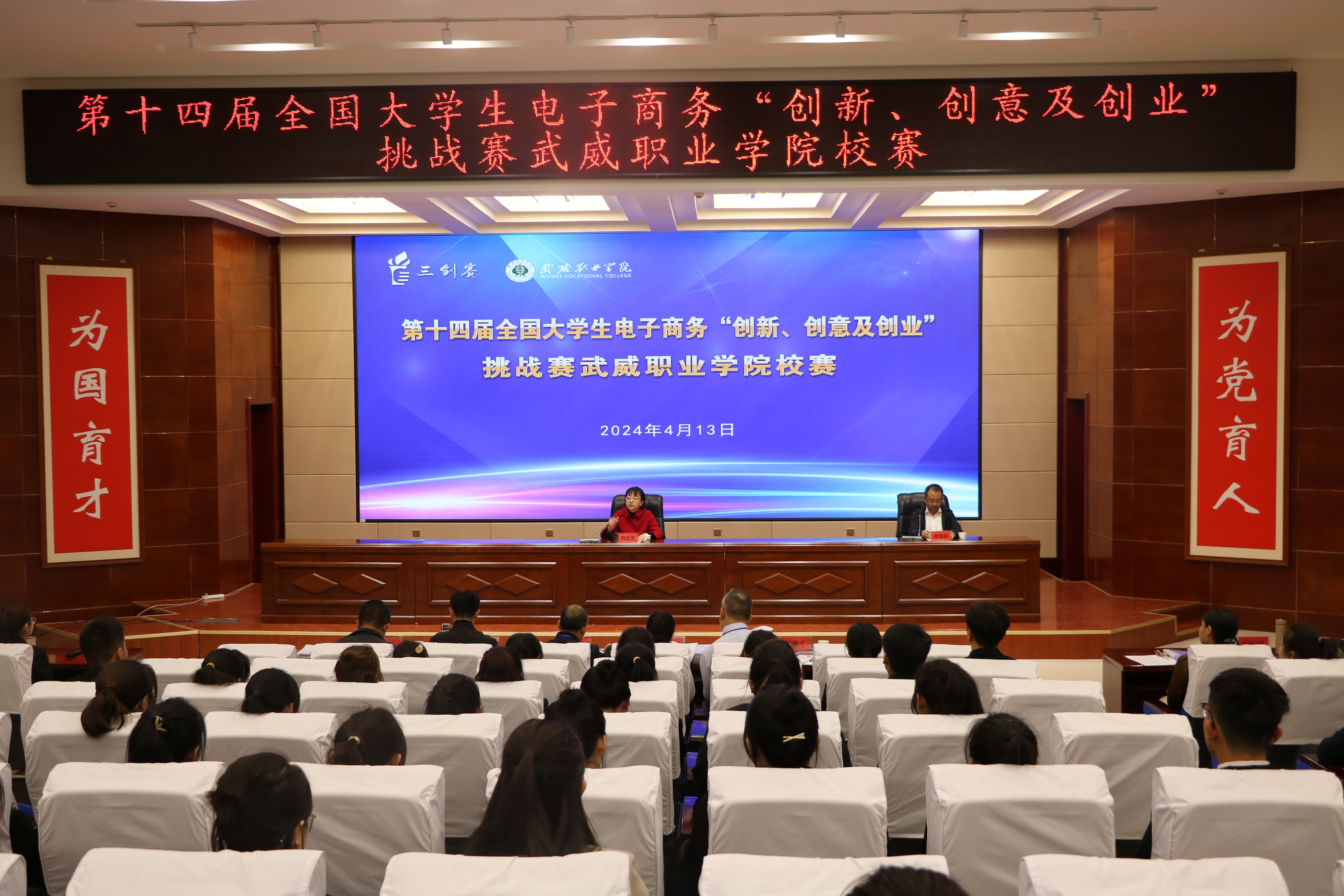 4月13日,我校在菁英廳成功舉辦第十四屆全國(guó)大學(xué)生電子商務(wù)“創(chuàng)新、創(chuàng)意及創(chuàng)業(yè)”挑戰(zhàn)賽校賽及開幕式。學(xué)校黨委委員、副校長(zhǎng)田迎春出席開幕式,專家評(píng)委、參賽選手等200人參加。