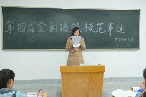 藥學(xué)系團(tuán)總支于2013年12月9日組織全體同學(xué)深入學(xué)習(xí)了“第四屆全國道德模范事跡”,一個(gè)個(gè)動(dòng)人的事跡印入耳畔,他們或充滿愛心、助人為樂,或見義勇為、舍身忘死,或敬老愛親、血脈情深。